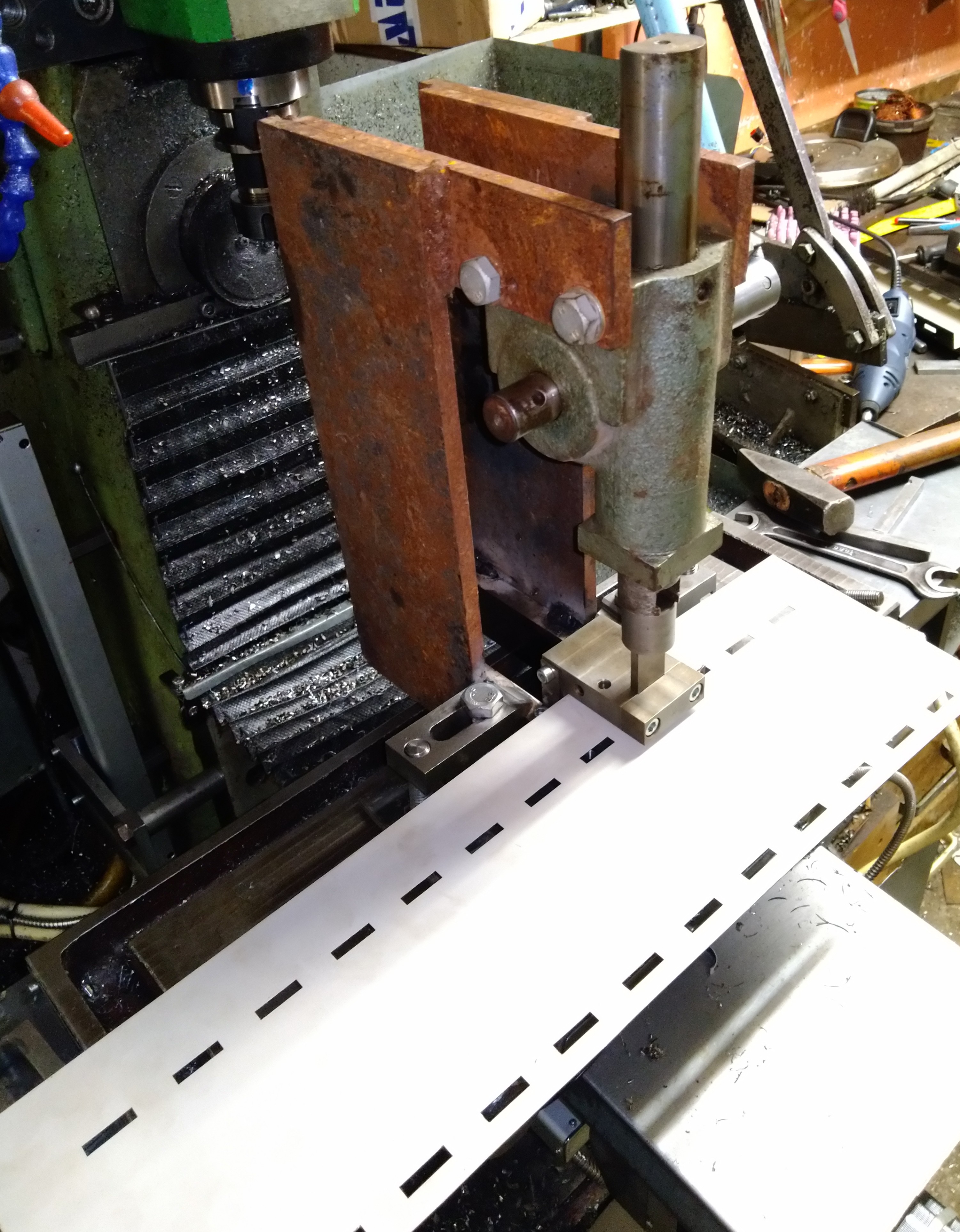 Jinak já jsem nedávno dobastlil ten stůl pod tím. 1000x800mm a rám je z U120, který z jedné strany přechází do I200 (na Ičku stojí nůžky)) do něj je vsazený rastr 150x150mm z pásovin 30x8, deska je z 5mm plechu a v rastru 150x150 jsou vyřezány závity M10 pro upínání těch ručních strojů (když některý zavazí, aby se mohl snadno sundat). Tím rastrem jsem kupodivu dosáhl solidní rovinnosti, i když mi o ni nešlo - není to svářecí stůl. Stůl je pro ruční stroje - ohýbačku ploché oceli z číny, ohýbačku trubek taky z číny, stáčečku pásoviny vl. výroby a české nůžky na plocháč. Dole jsou ještě dva šuplíky pro přípravky ke strojkům a polička pro nezařaditelné věci v dílně