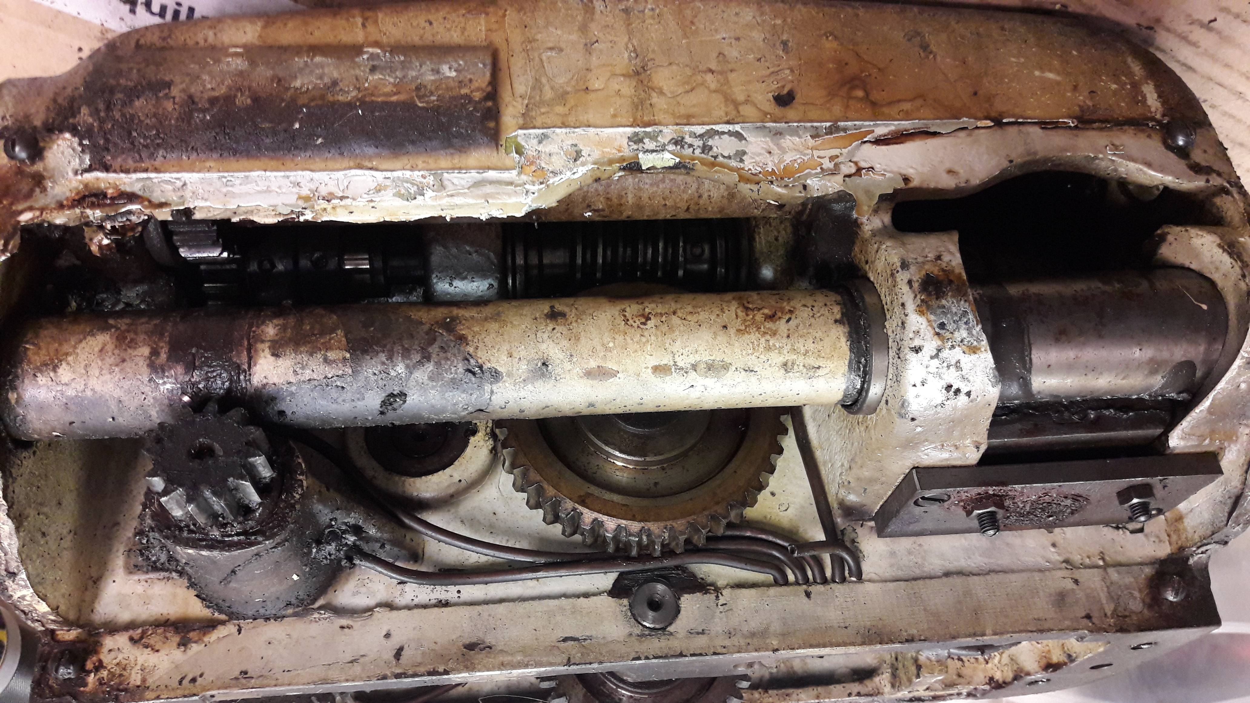 Ano, co jsem vypozoroval tak je to vlastnost tohoto stroje. Olej ze suportové skříně při zapojení strojního posuvu kape na tu hřídel a jejím otáčením se roztéká po celé její délce takže je celá mastná a pak to z ní kape do vany na špony a do toho žlábku na zadní noze. Vše co tam odložím je mastné. Děje se to od té doby co jsem zprovoznil olejové čerpadlo suportu (pružinka byla v háji).Jan Pravda píše: ↑17. 4. 2020, 12:55 Z jineho soudku - konecne se mi povedlo izolovat misto odkud tece ze supportove skrine olej. Spis teda kape.