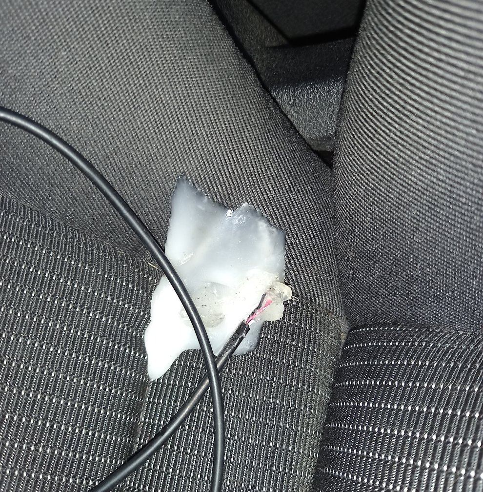 Jo, to je ono. Ta potvora taje kolem 65°C. Auto stálo na sluníčku několik dnů a tak se to hodně vsáklo. Teď s tím nejde hnout