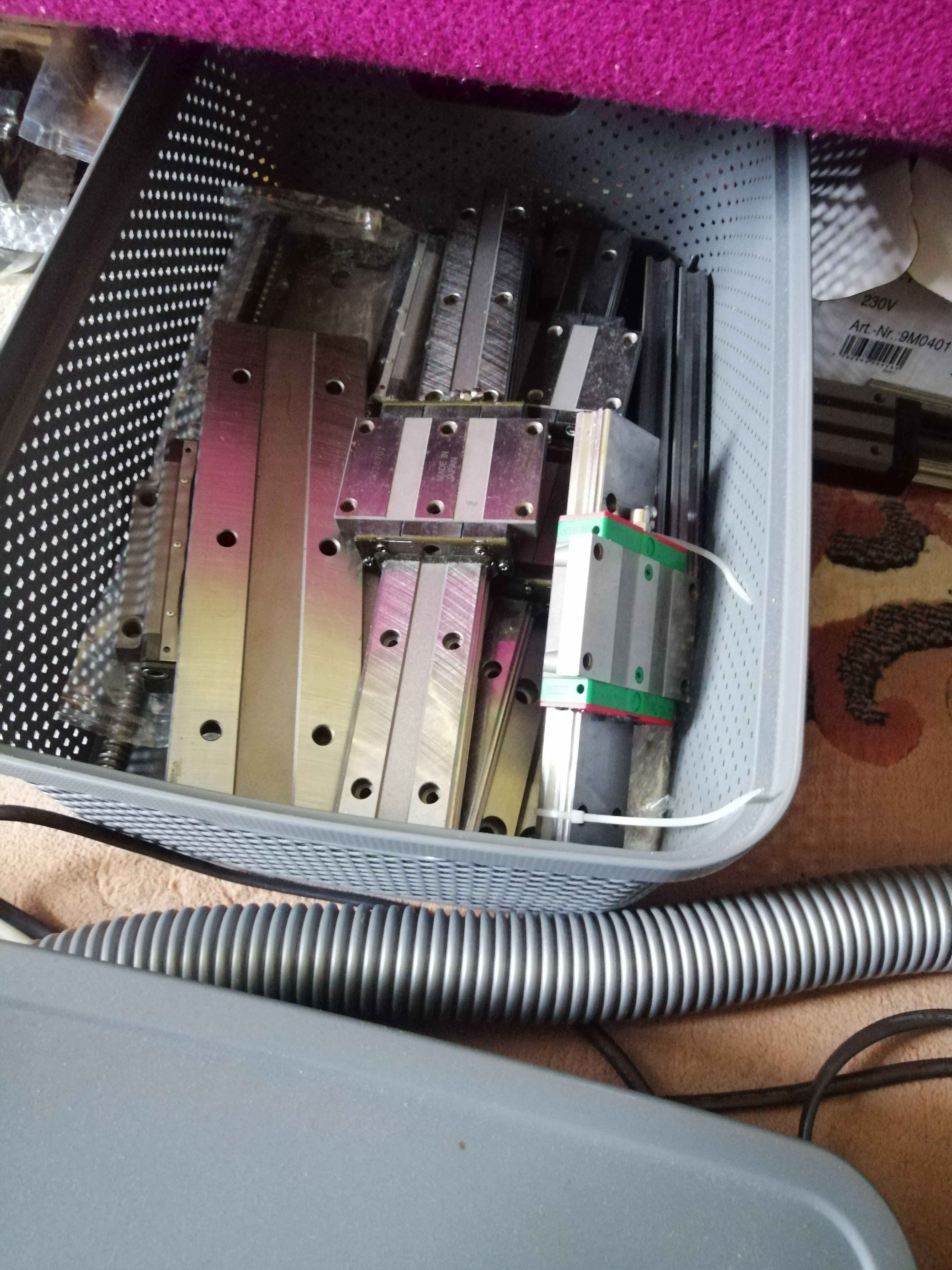 Tam kde vycnievaju Lineary zo základne, ten posuv sa už neráta do pracovného posuvu, keď su oba vozíky na linear och na podopretej základne, je pracovný rozsah niečo cez 200mm... Mam to tak urobene ze mi to ze budu dlhšie nevadí, bude to môcť vlastne ísť aj po drahe keď sa jeden z dvoch vozíkov dostane na nepodopretu časť koľajnice.. Ale je mi jasné že tam tuhosť a presnosť nebude, rátam na obrábanie len s t i 200mm.. A keďže mam vlastne prístup k linearom práve 25kam, a mam ich free... Tak som ich použil. Veľa veci by bolo jednoduchších, keby som mal menšie... Ale aspoň tých pár 20tok na os z som tiež získal... To len preto, ináč by som najradšej dal také 15tky, možno na y os 20... A pritom mi ich ešte zostalo dosť veľká časť... Tak vyrábam, nech sa nenudim:)