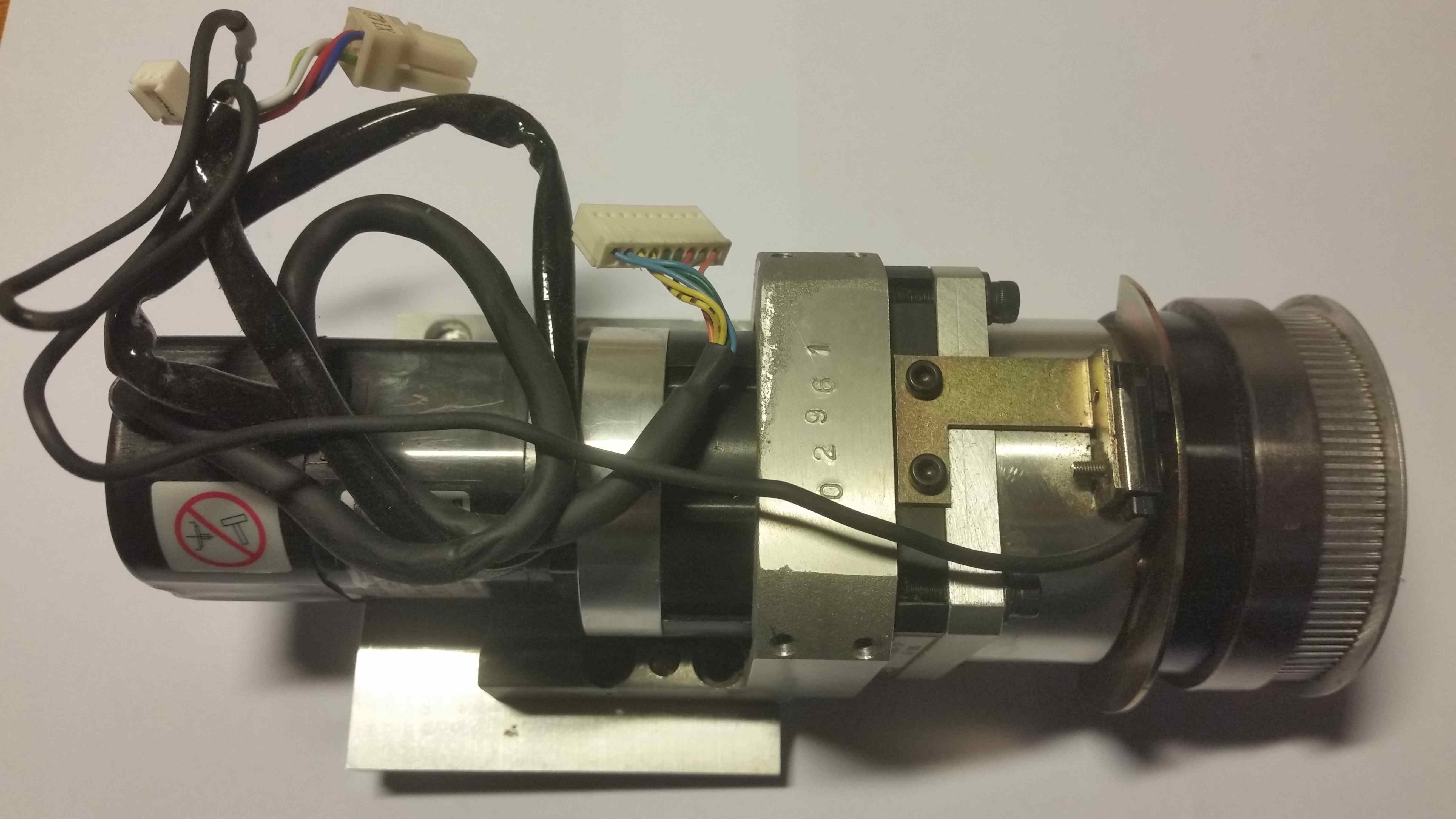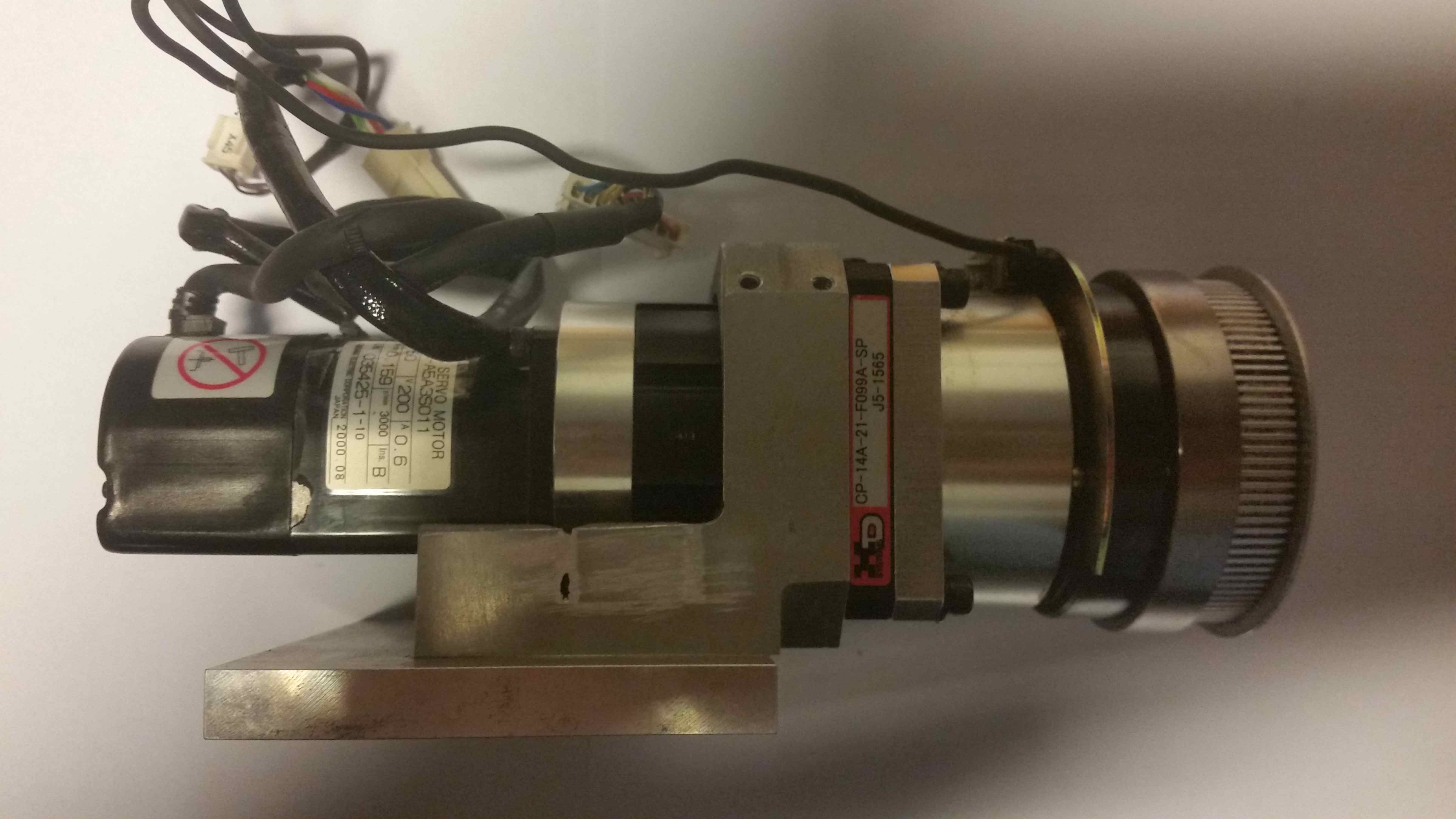 Servo Yaskawa, inkrementalni enkoder, senzor vychozi pozice, montazni konzole. Planetova prevodovka Harmonic drive.