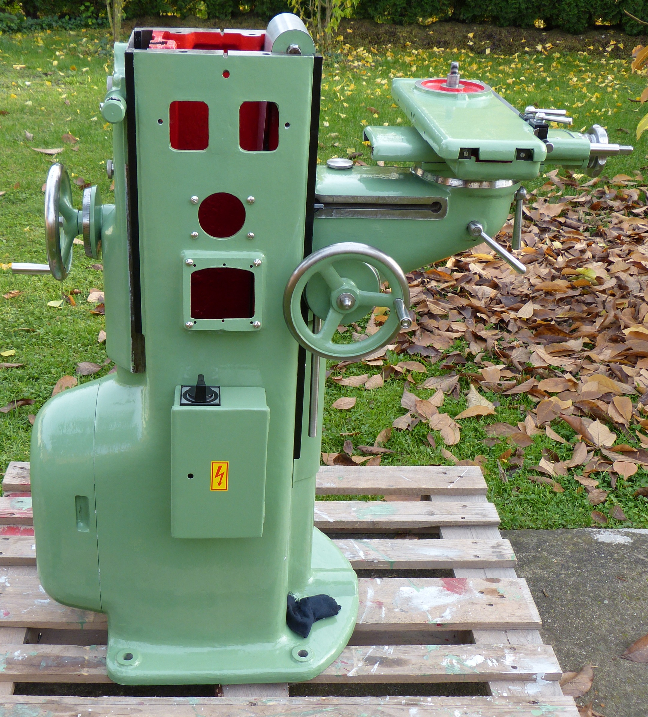 Vzhledem k tomu, že si potřebuji nabrousit nástroje atd., jsem si koupil brusku N1 s nějakým příslušenstvím. Na brusce se hodně dlouho nedělalo, tak jsem ji po dovozu hned skoro celou rozdělal, barvu sundal až na kov, protože se hrozně loupala. Takže teď ji celou postupně opravuji, vyrábím chybějící díly a v závěru „štětkuji“. Co jsem zjistil, tak podélný stůl se vyráběl s vedením rybinovým nebo na kuličkách. Já mám na kuličkách, kuličky průměru 4mm princip stejný jako u hrotového přístroje (příslušenství N1). Vedení rybinové má dle manuálu rozjezd 260mm, ale kuličkové max.230mm. Jelikož já potřebuji min. 250mm pro hoblovací nože, tak jsem zezadu do stolu vyřezal dvě vybrání, abych se dostal na těch 260mm. Malá nevýhoda je teď v krytování vzadu a vpředu (dostanu se stolem více dopředu) a končící lišta seřizování jednoho dorazu.