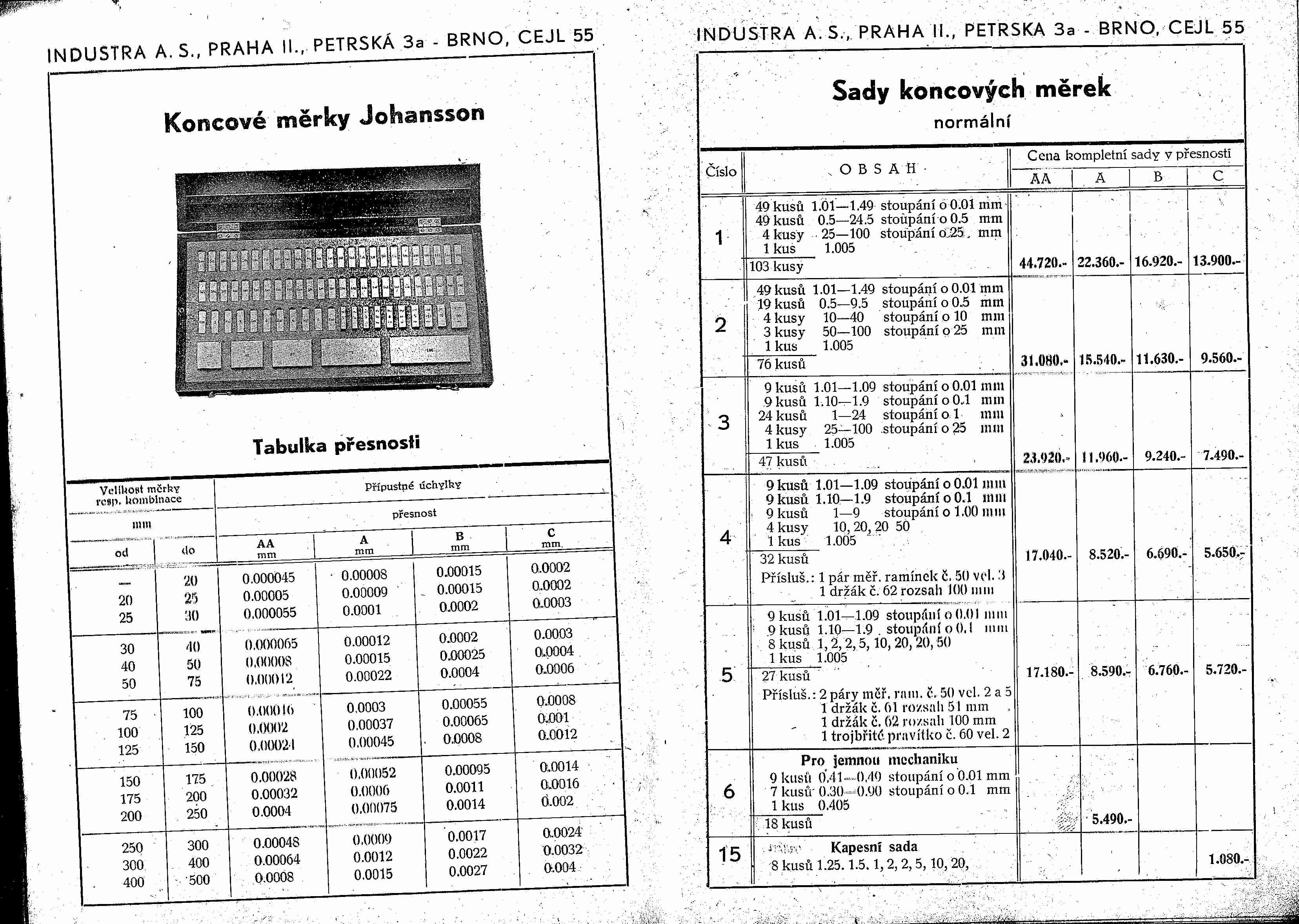 jeden pán mi poslal (včetně jiné staré literatury) katalog přesných nástrojů zbrojovky brno z roku 1935, je tam kompletní sortiment, včetně ceníků, jak jsem to pročítal, tak jsem se dostal ke katalogu kompletního sortimentu firmy johansson, přikládám sken koncových měrek a mikrometrů