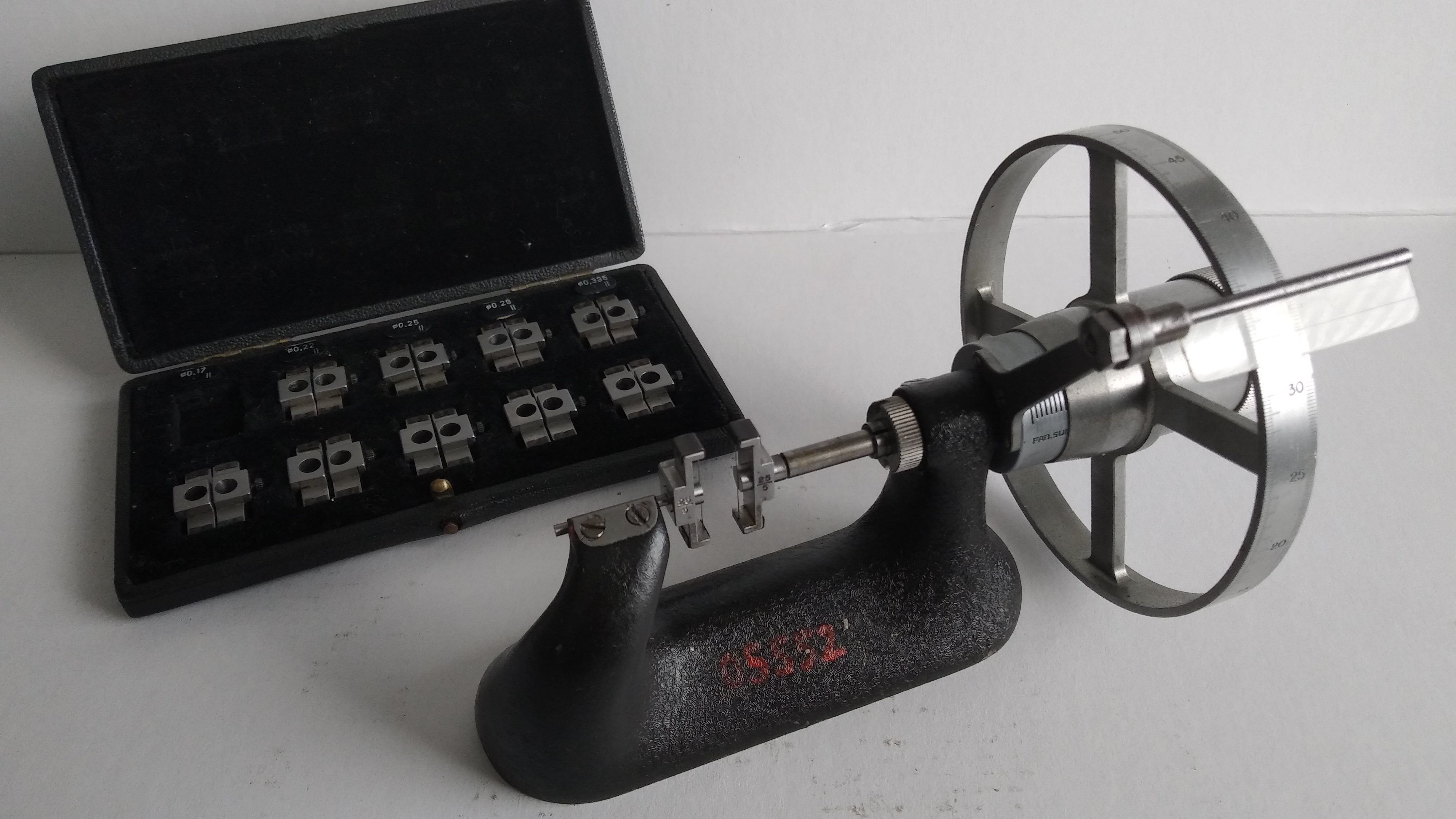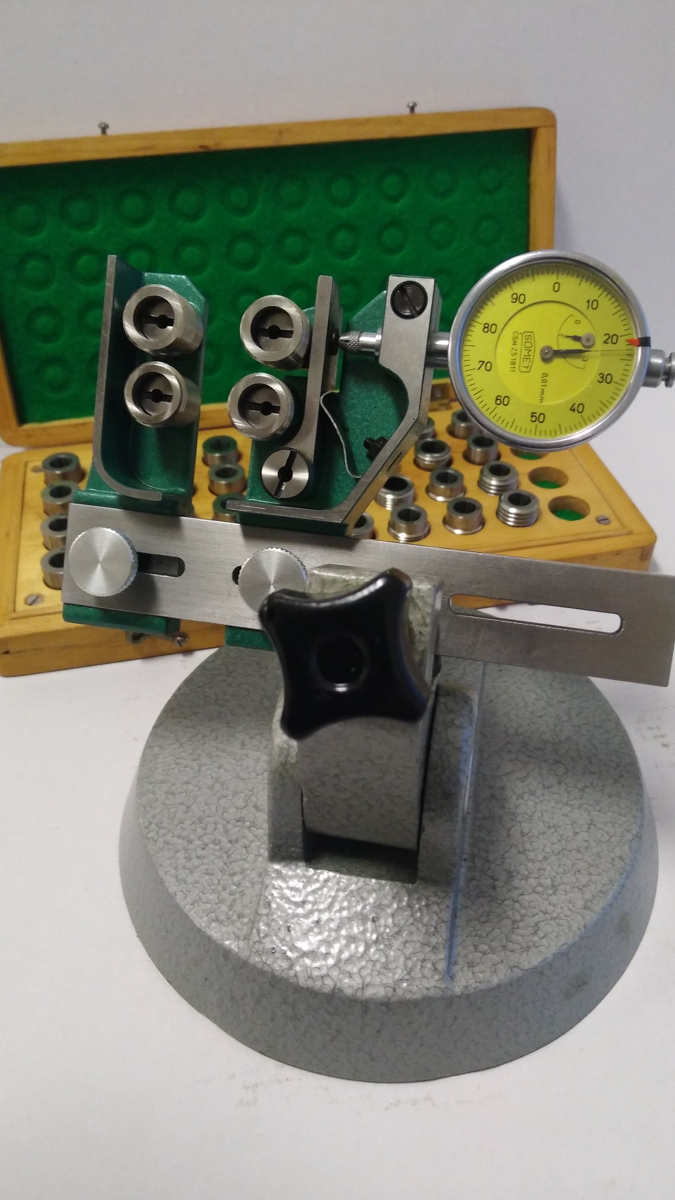 Na fotce kulatý dotyky pr. 2. Kladkový hodinkový měřidlo na tolerační kontrolu závitů v serií (existovaly 4 typy, vyfotit můžu klidně všechy