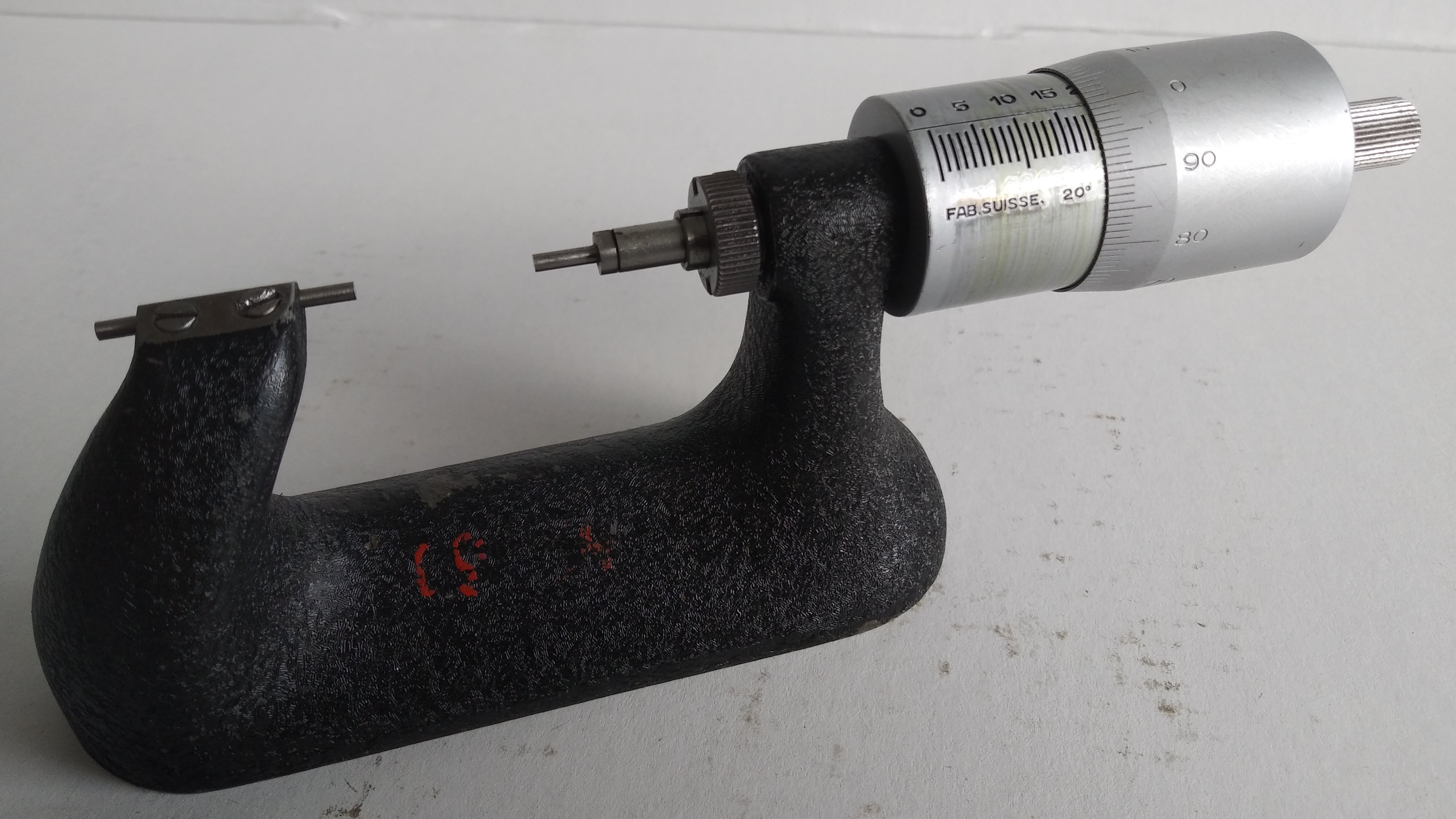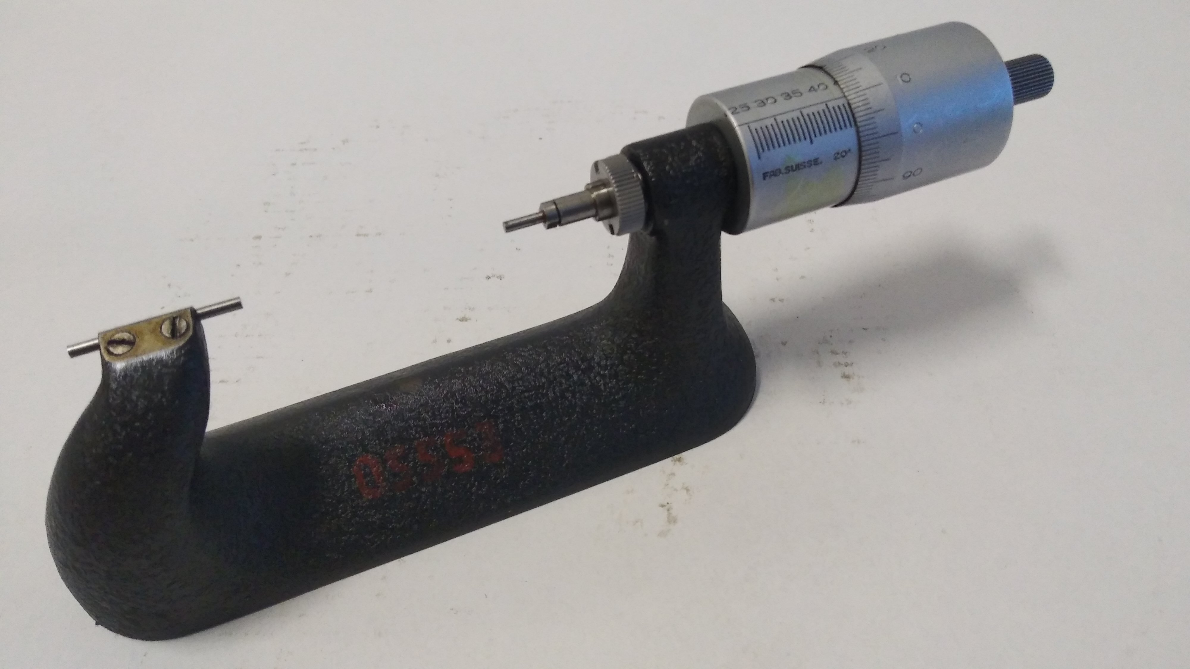 Tavannes 25 - 50 - opět verze s statickým vřetenem (vřeteno se netočí jako u běžného mikrometru), vyměnitelné dotyky, takže lze měřit v drážce - už od tlouštky dotyku - tj. cca 0.2mm)