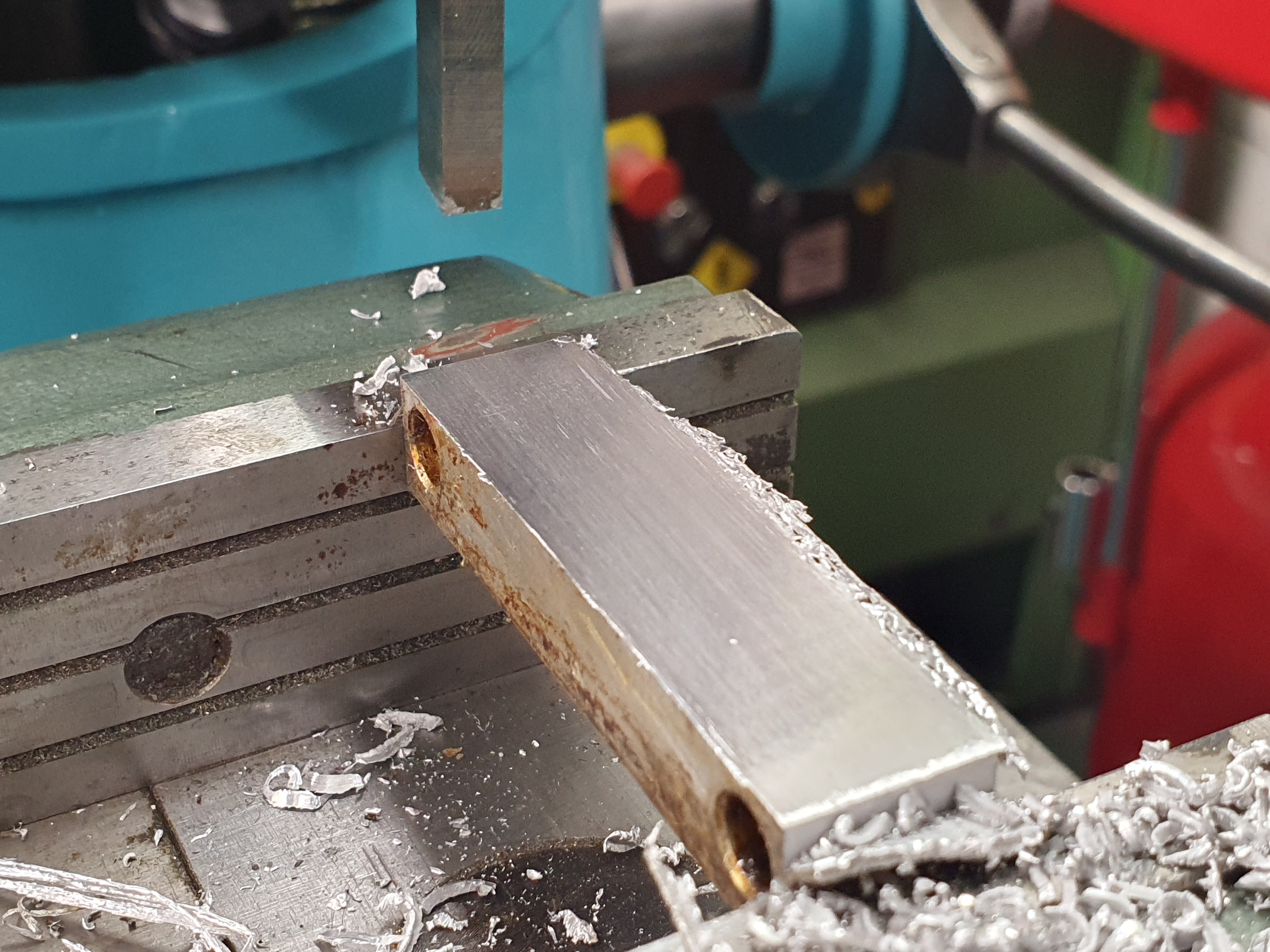 Omlouvám se za kvalitu fotky ale vyběhl jsem do studené dílny jen v papučích a pořádně si nerozsvítil. Navíc u mě není moc na co hledět protože barvu vnímám především jako ochranu proti zrezivění. Ale k obrážečce gratuluji. Umí dělat povrchy za které by se nemusela stydět ani bruska na plocho jak co do vzhledu tak i přesnosti.