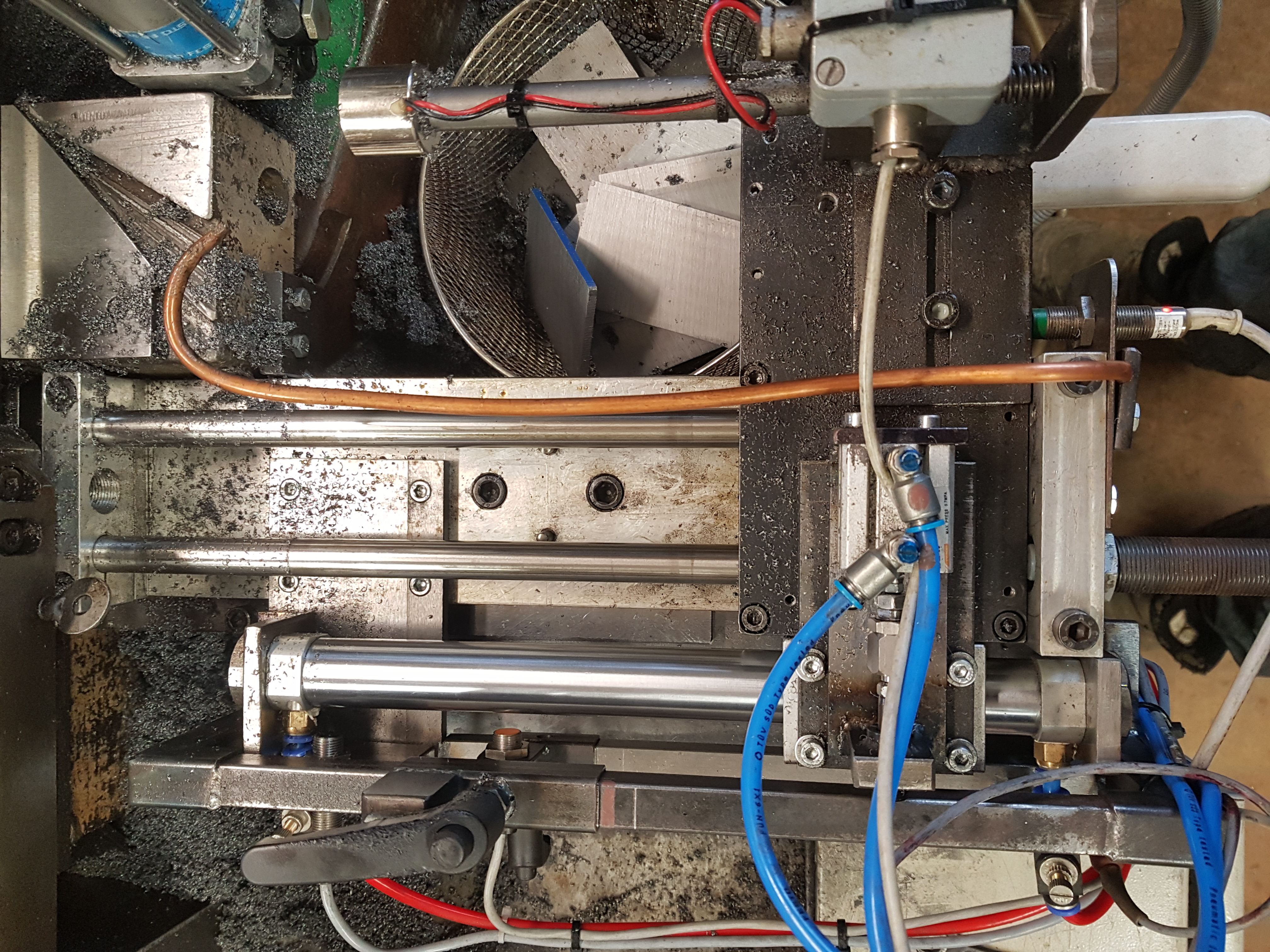 Zdravím, tak se po delší době podařilo postavit první prototyp klasické pily Bomar na automatickou. Podotýkám jen že byla stavěna za účelem řezání právě takovýchto plátků z bloků nástrojovky, zlvádne samozřejme více věcí o které se postará jednoduché přenastavení dorazů a snímačů....