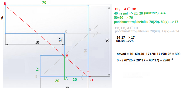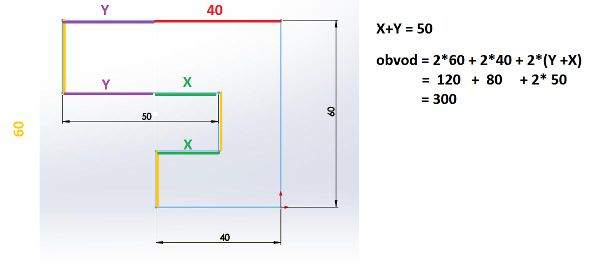(40 + x) + 50 + (50 - x) + 40 = no a protože máme +x a -x = tak je nám vlastně jedno, jak je tento kousek dlouhý