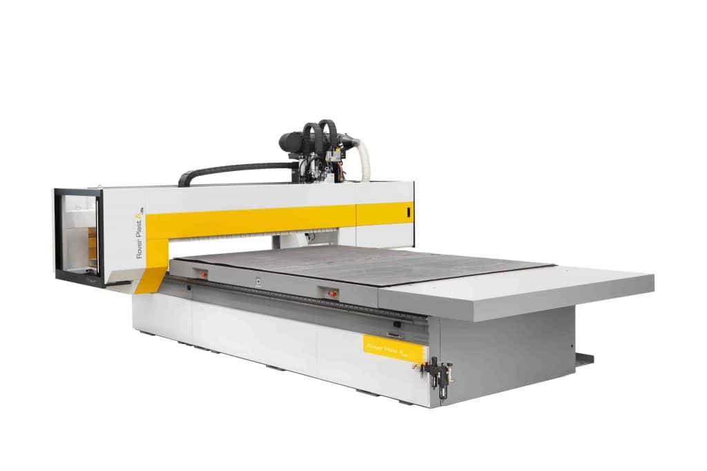 CNC Biesse Rover A PLAST 1224 3 osy - frézování HLINÍKU včetně tvorby závitů, ALUBOND desek, překližek, PIR desek, styroduru a ostatních materiálů. Oscilační elektrický a pneumatický nůž na řezání PIR desek, těsnících gum. styroduru, pěn a jiných materiálů. Maximální obráběcí plocha 2465x1260x200mm.