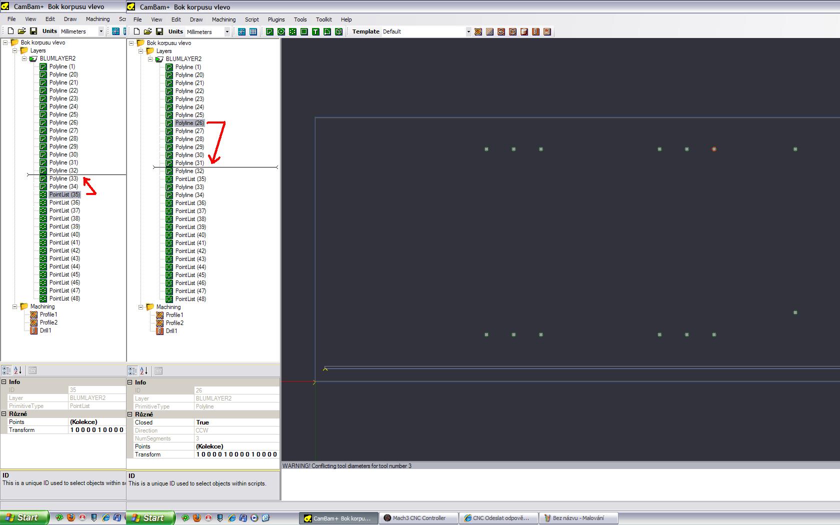 Potřebuju pomoct, mám dílec který mi vyleze z jednoho programu v dxf. Nahraju ho do Cambanu potřebuju ho otočit o 180° to udělám pře transform to je ok. umístím jak potřebuju vše vypadá dobře. Ale jakmile začnu vytvářet point list středy děr tak ty díry jsou na původním umístění. To samé když ten dílec otočím a dám export do dxf tak po novém otevření to zase není otočené. Jsem z toho mimo. Když zkusím otočit ten point list a dám vrtání tak je to opět na původním místě pls help. Nechce se mi použít zase další program na otočení.