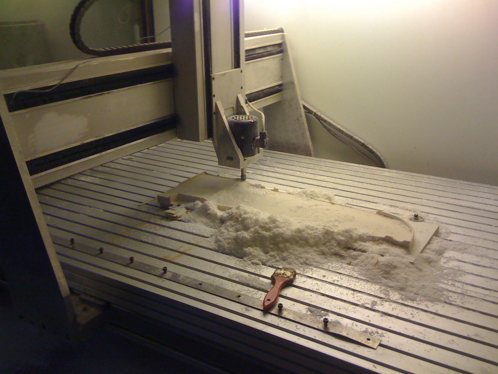 osu ještě hotovou nemám, ono hlavně ji nemám čím ovládat, používám Gravos, ale oni ještě nemají napsaný program pro čtvtou osu, prý se na tom pracuje a bude brzy, pokud ne, budu muset zkusit něco jiného co by běželo s elektronikou od Gravosu, pokud je to vůbec možné kombinovat, doufám že to ale nebude potřeba co nejdíve bude napsaný, už bych to hodně nutně potřeboval