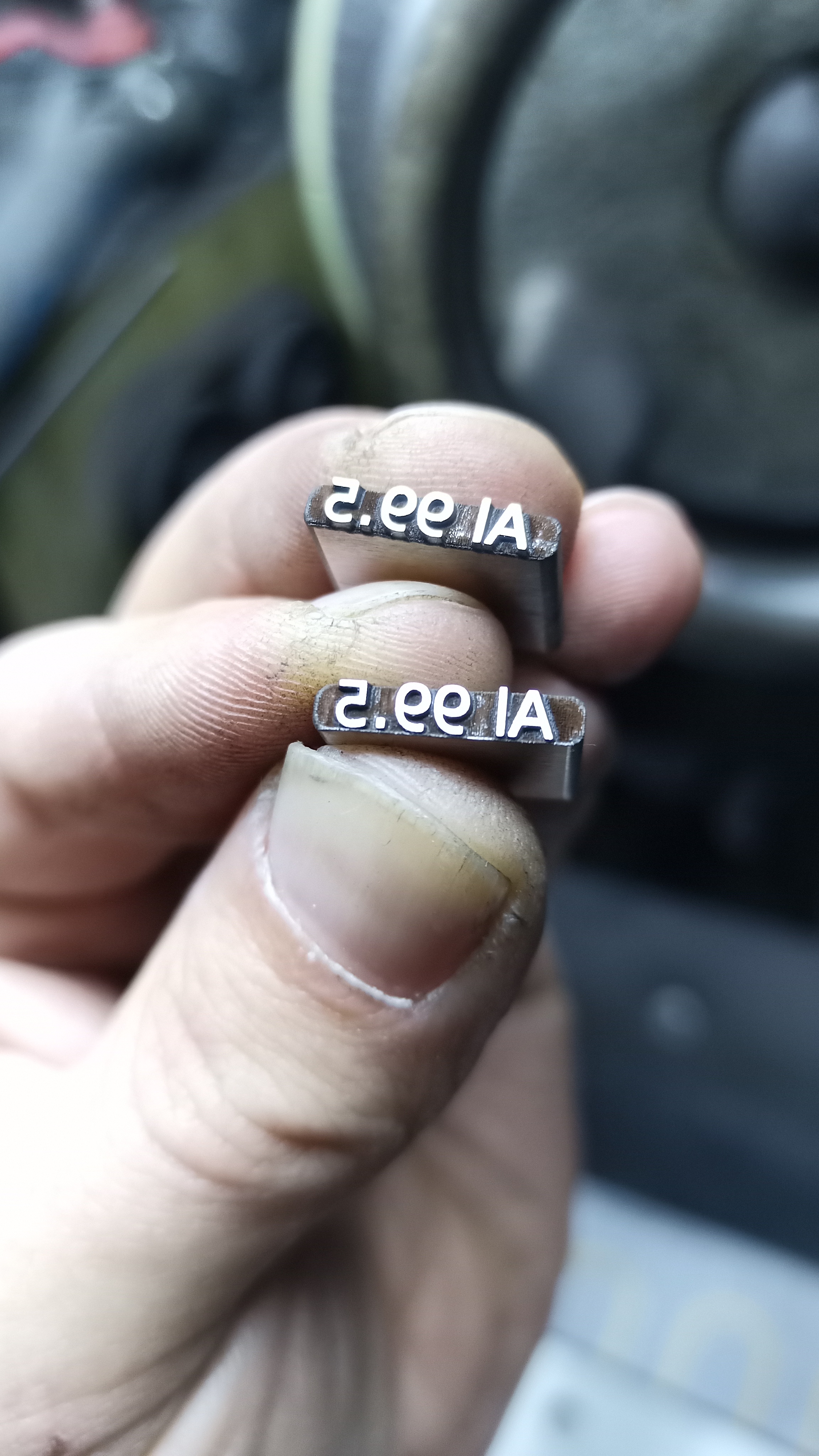 Robíme brúsené vymedzovacie podložky pre jednu firmu na stovky kusov, v tolerancii +/-0.005mm a potreboval som ich značiť - číslo nástroja, sada, hrúbka. Trvalo mi skoro pol dňa kým som trafil parametre, aby bolo písmo ostré, čierne, ale hlavne nesmie sa na písme zmeniť hrúbka platničky, ani do plusu, ani do mínusu (to bol najväčší problém).