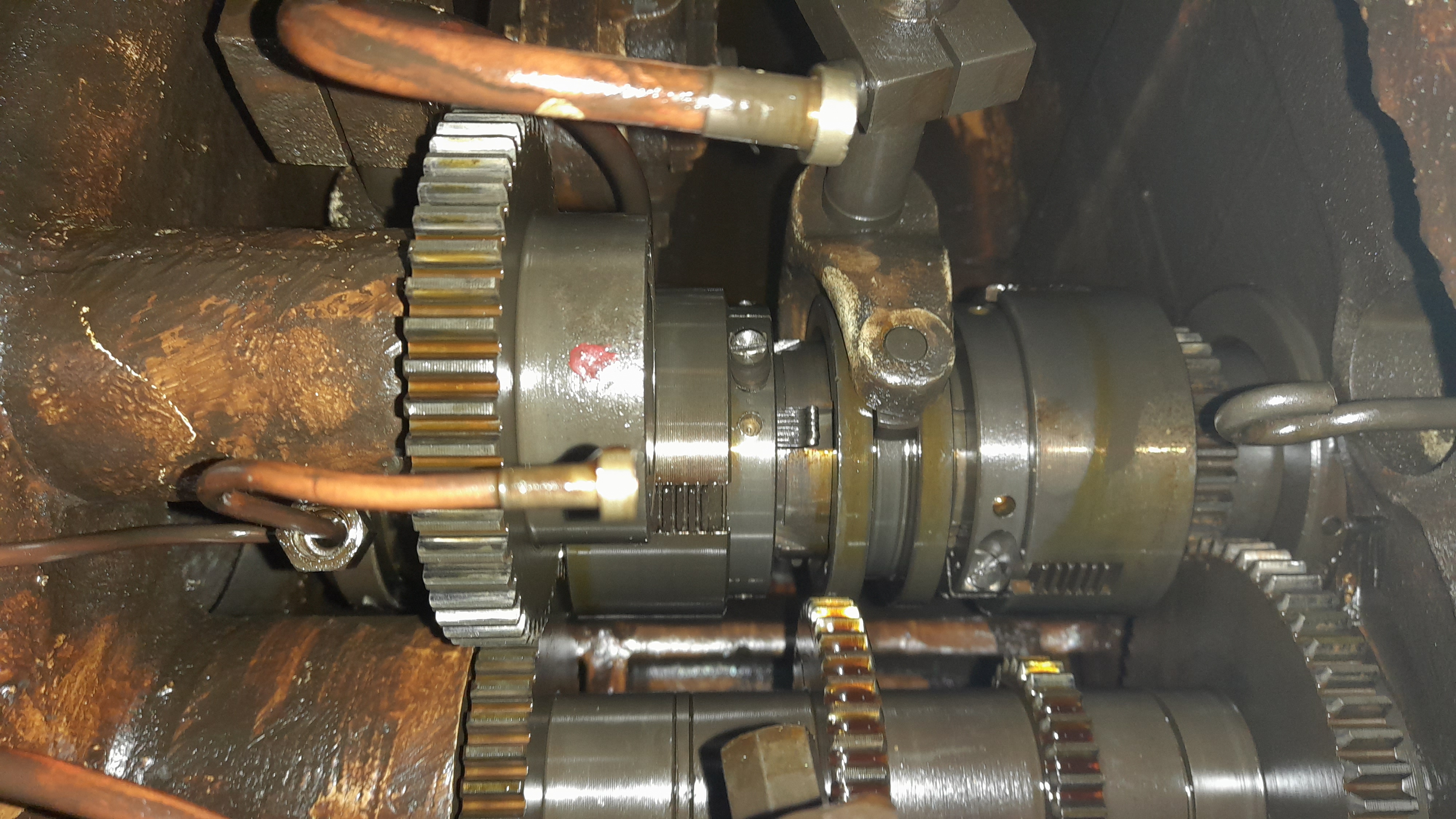 Ano, co jsem vypozoroval tak je to vlastnost tohoto stroje. Olej ze suportové skříně při zapojení strojního posuvu kape na tu hřídel a jejím otáčením se roztéká po celé její délce takže je celá mastná a pak to z ní kape do vany na špony a do toho žlábku na zadní noze. Vše co tam odložím je mastné. Děje se to od té doby co jsem zprovoznil olejové čerpadlo suportu (pružinka byla v háji)