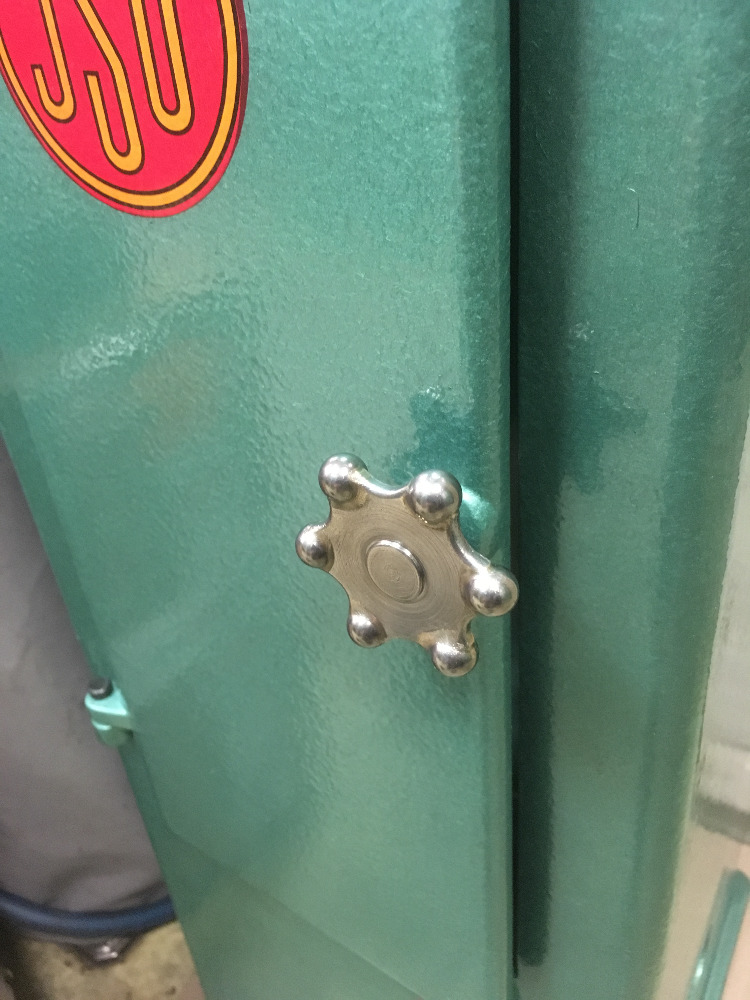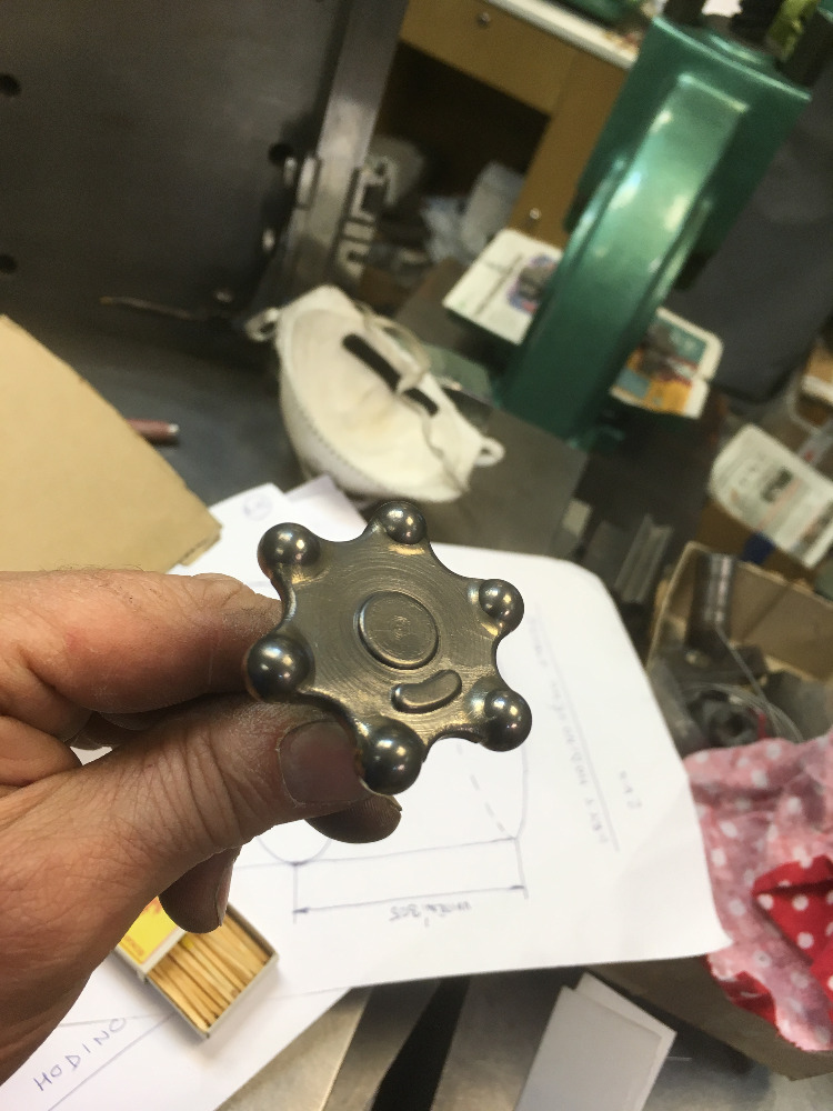 Na mém soustruhu mi v minulosti chyběl originální " obrtlík " u dvířek a tak jsem si nechal poslat fotku a pok už se to zhmotnilo v dílně.