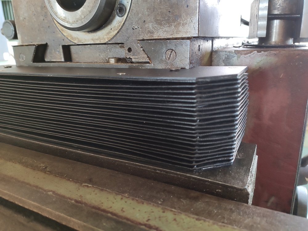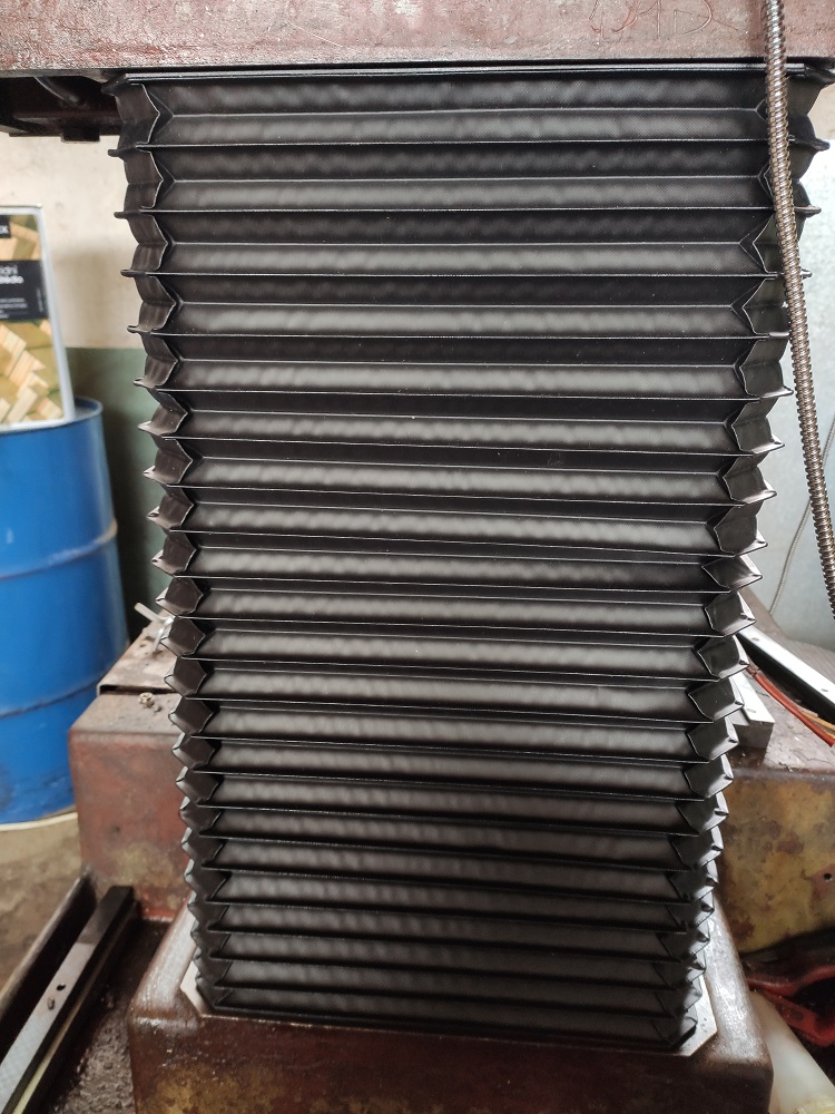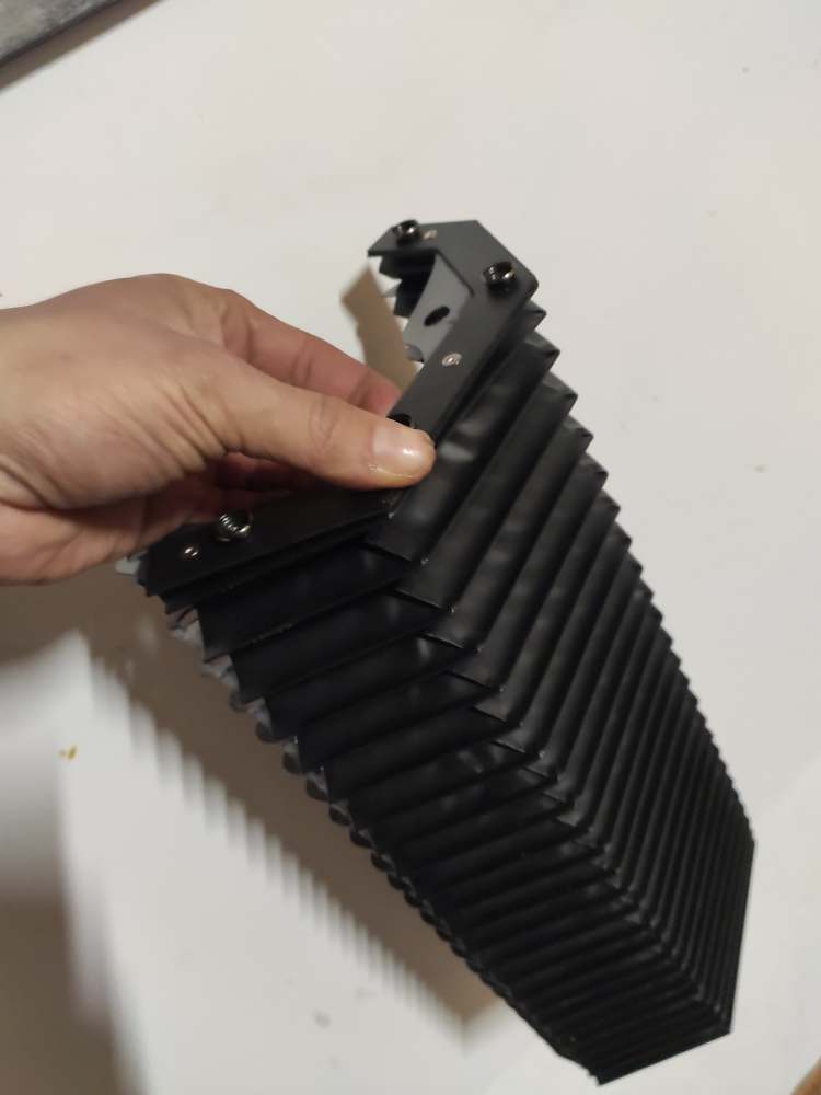 Nový dodavatel dělá kovové "end plates" (nevím, jak to popsat česky). Předchozí měchy byly komplet plastové. Nový dodavatel má i neobyčejný smysl pro detail - odřenou práškovou barvu začerňuje lihovou fixou :D Co mě zarazilo, že tkanina měchu vypadá jinak než u předchozího dodavatele - dneska jsem přišel na to, že je prostě jen otočená. Nevím, která strana je ta správná, snad to je jedno.