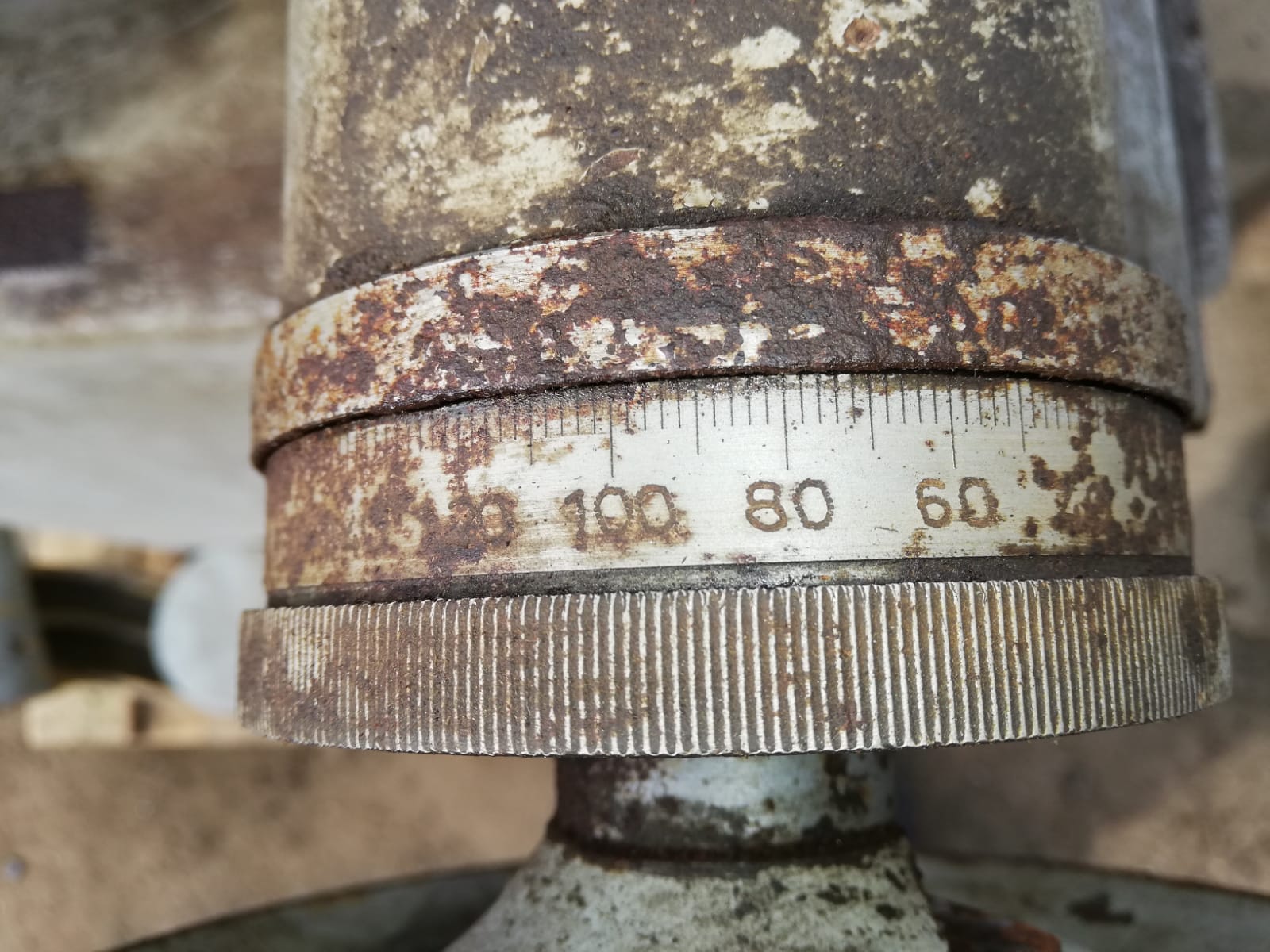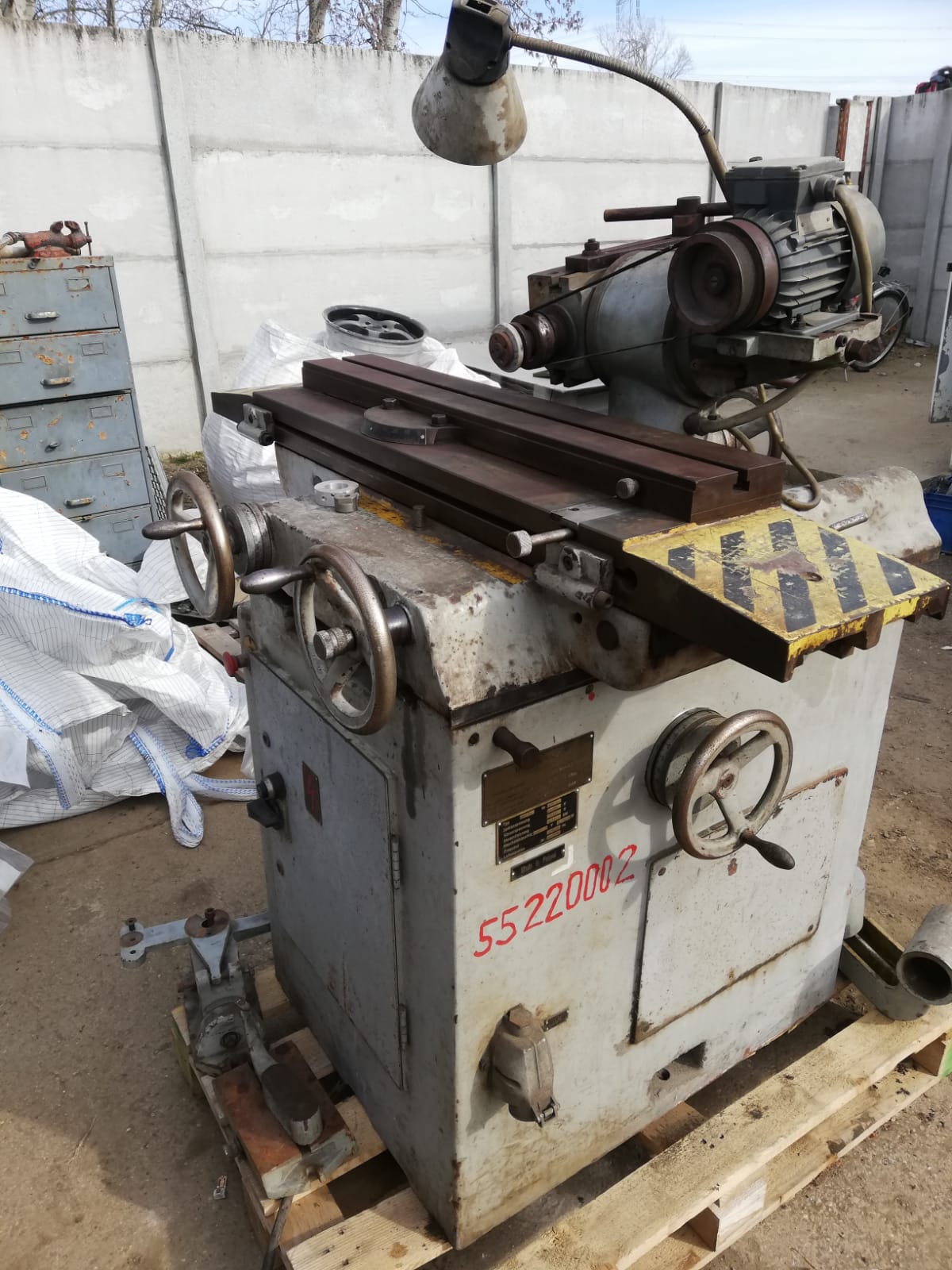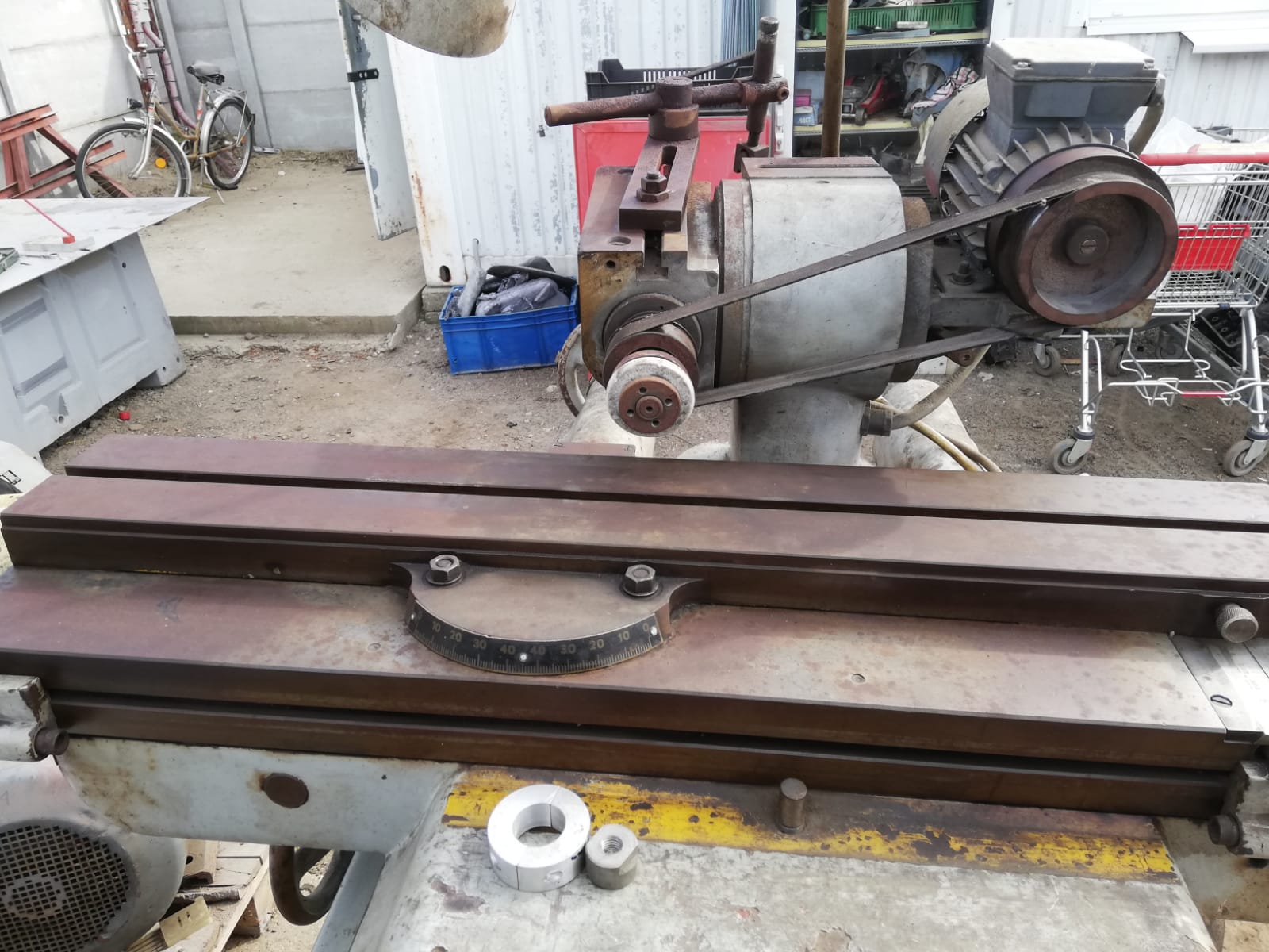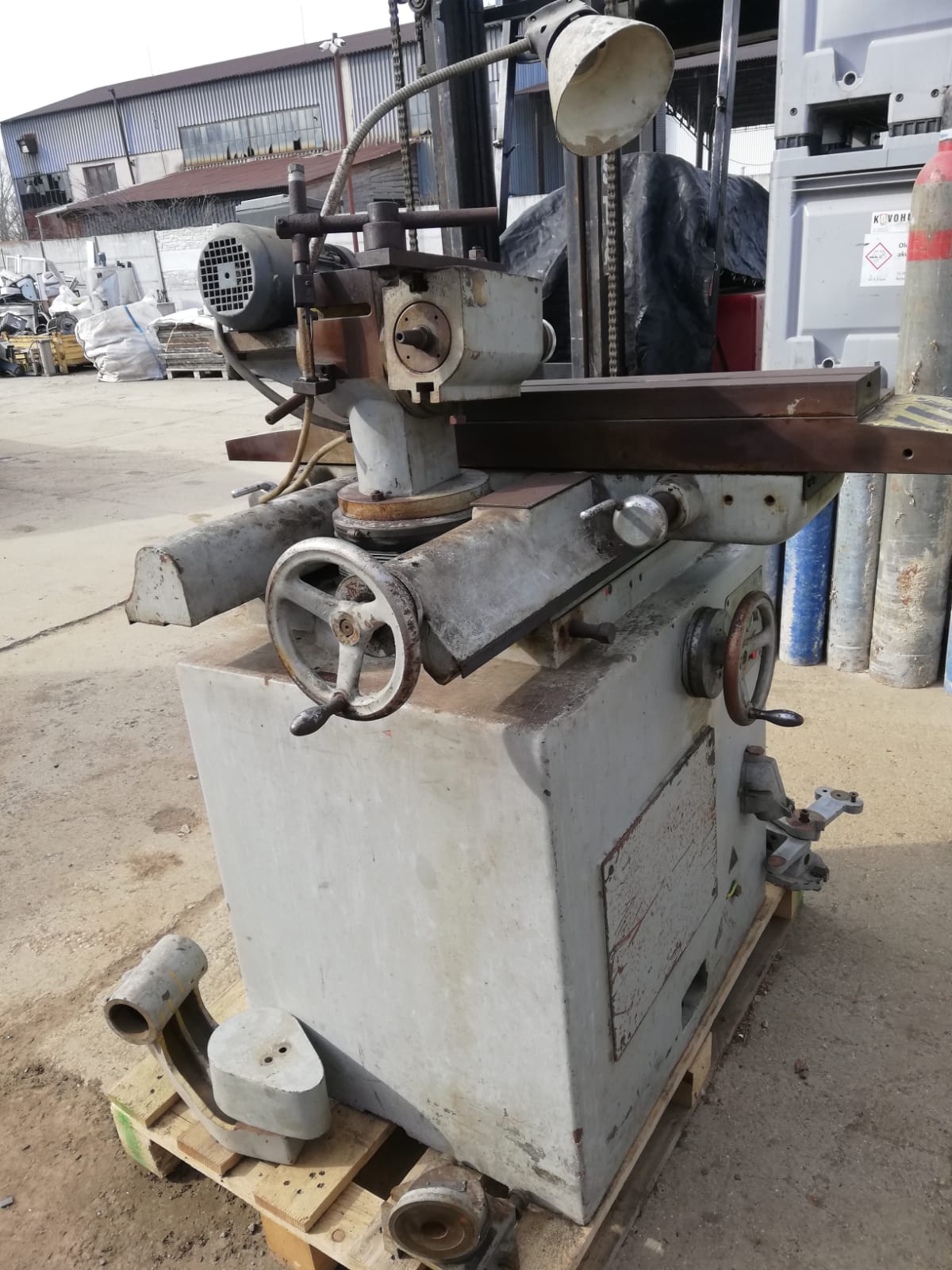 nieje to síce môj predaj, ale možno sa jej niekto poteší, brúska je v slušnom stave a moc nerobila. Brúsku som bol osobne pozrieť, je síce špinavá od železného prachu zlepeného emulziou a vyzerá ako hrdzavá, ale v skutočnosti nieje, bola v hale a po nastriekaní olejom a prejdení rúnom sú plochy v dobrom stave, bez korózie (vidno na obrázku nónia). Vreteno sa točí hladko, nezdá sa že by malo vôľu. Posuvy idú hladko, bez problémov. Priečny posuv nejde (pri točení kolesom sa stôl nehýbe), podľa zbežnej prehliadky je zrejme uvoľnená matica posuvu, nezdá sa že by tam mala byť vážnejšia závada. Na vedeniach je ešte vidno stopy zaškrabávania.