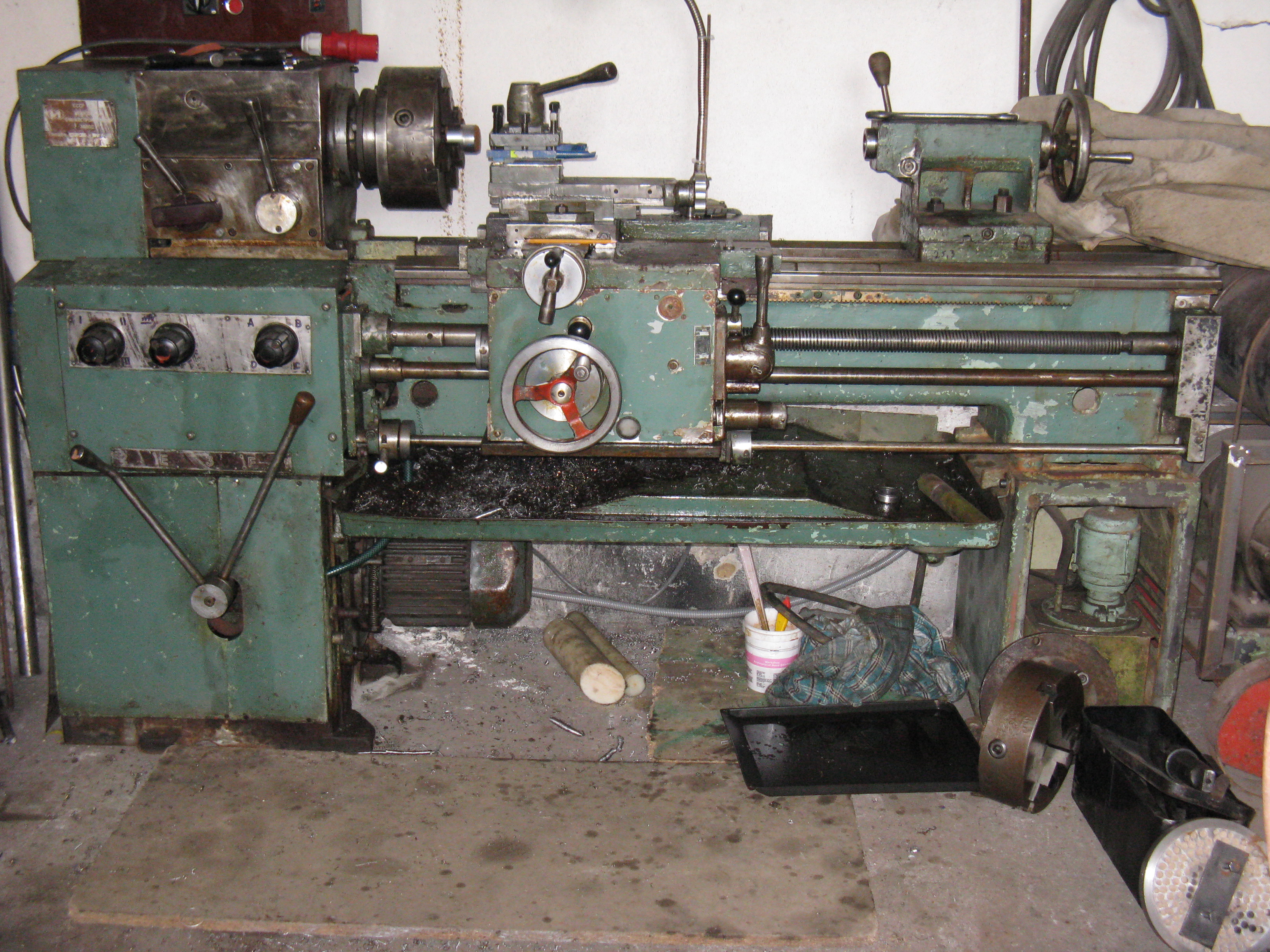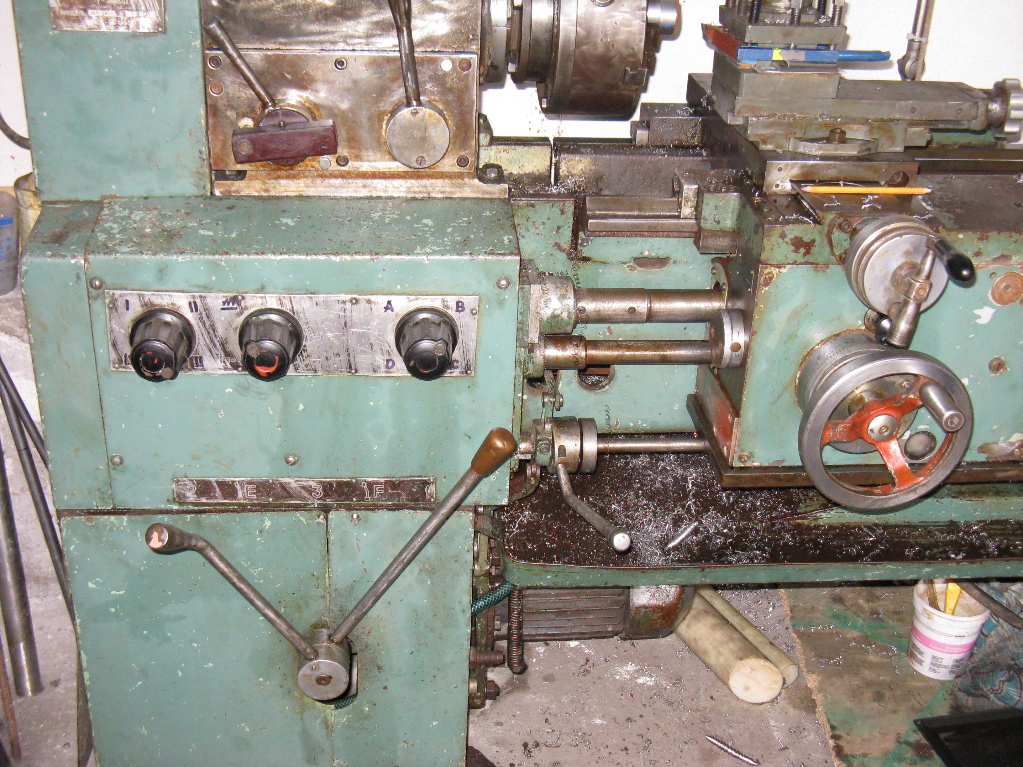 Soustruh je bez tabulek a bez návodu a nevi se kerá páka je na co.