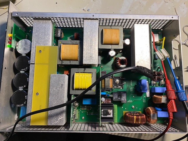 Když jsem začal rekonstruovat svůj strojek, potřeboval jsem zdroj poněkud vyššího napětí. Nakonec jsem koupil tento (podle prodejce nový jako záloha), po rozebrání to i tak vypadá. Uklidil jsem ho do regálu a když byl potřeba nenašel.