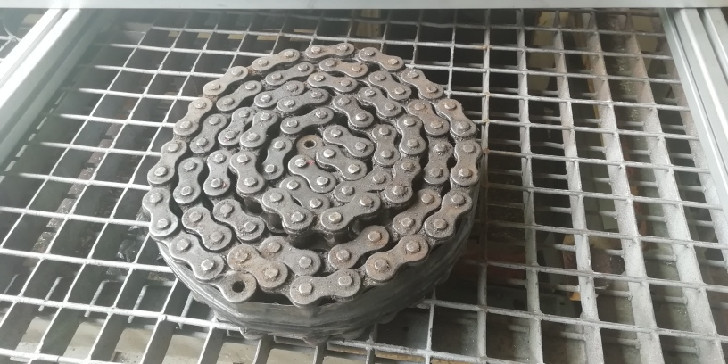 dělal jsem tak řetězky na řetěz s roztečí článků odhadem tak 100 mm
