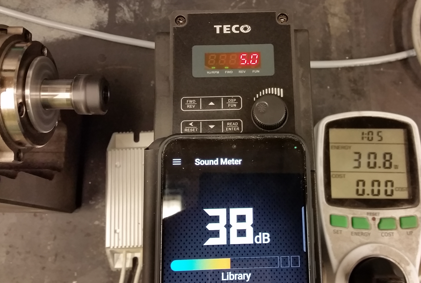 Už je jaksepatří zaběhnuté a tak jsem změřil spotřebu naprázdno a hlučnost při různých otáčkách.