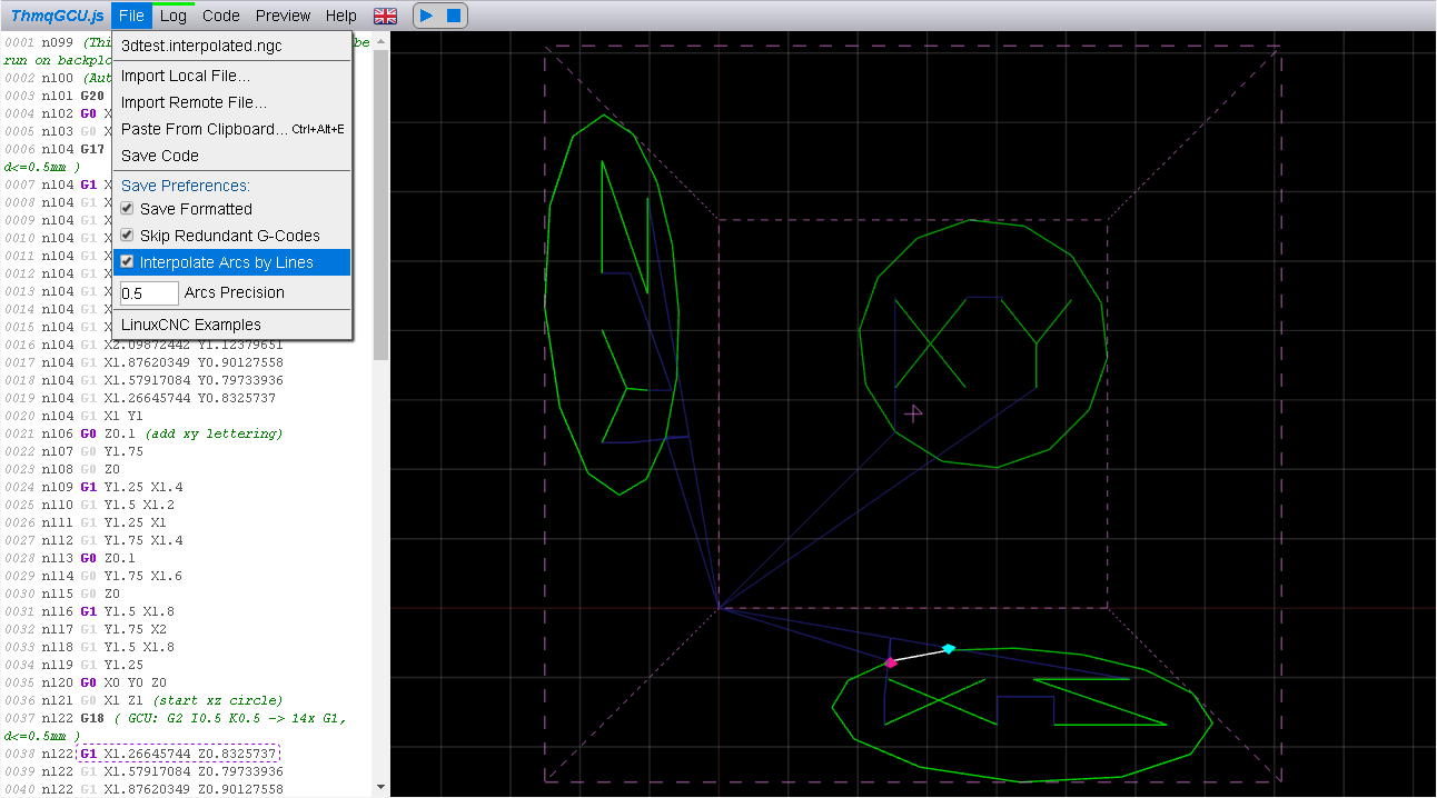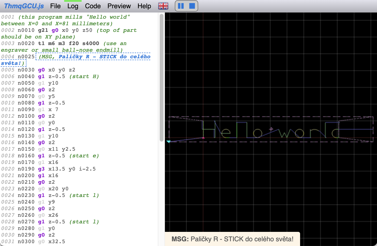 kdysi jsem rozjel tento program. Záměr byl vytvořit on-line prohlížedlo gcodu, do kterého budu postupně vkládat všelijaké, spíše jednodušší užitečnosti (otočit, změnit měřítko, namnožit v nějakém rastru atp.). Inspiroval mne bobik tímto požadavkem). Už si s tím hraju docela dlouho, čim víc je toho uděláno, tim víc toho dodělat chybí (např. ten bobíkův požadavek :D), ale něco už to přecijen umí a mohlo by to už být užitečné.