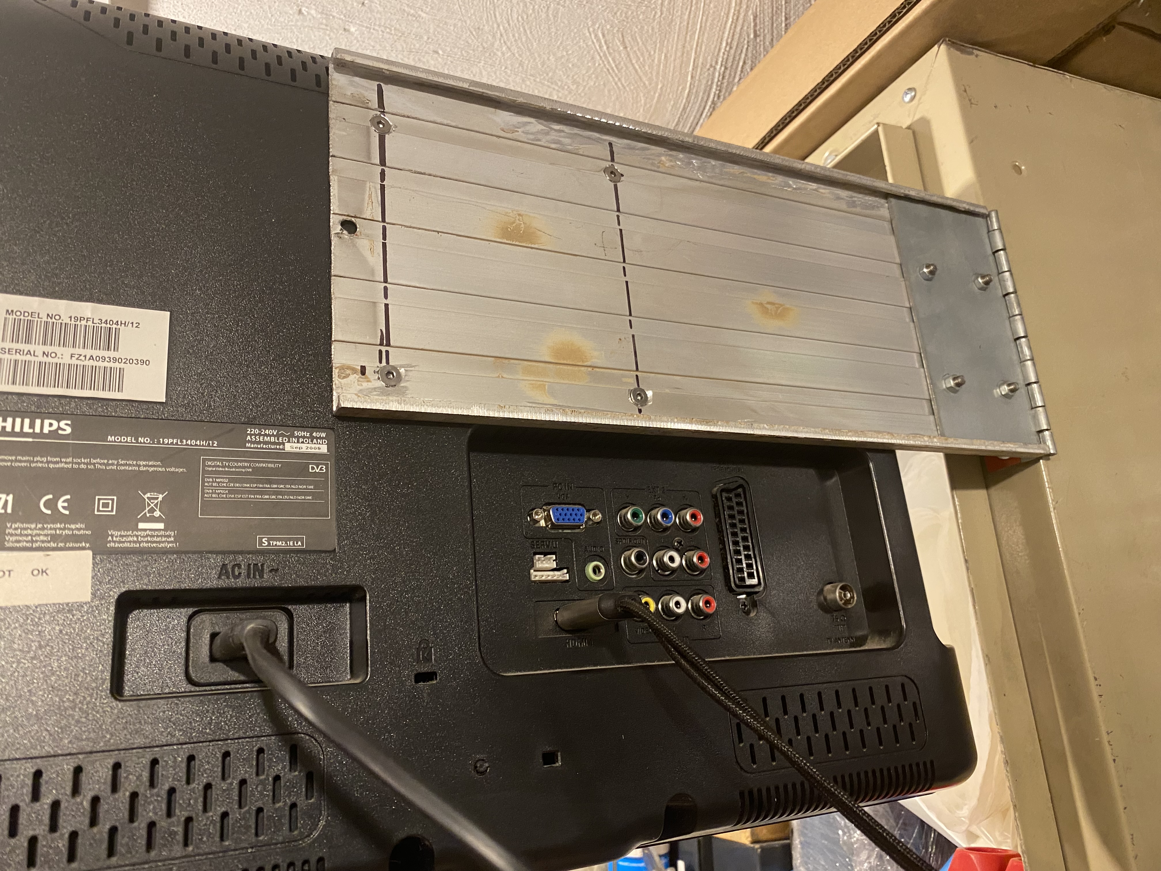 Hliníkový profil je ze starých kovových dveří ze sběráku odtamtuď je i ostatně ta tv , ale teď mi odtamtud dorazila větší tv tak budu muset asi držák předělat