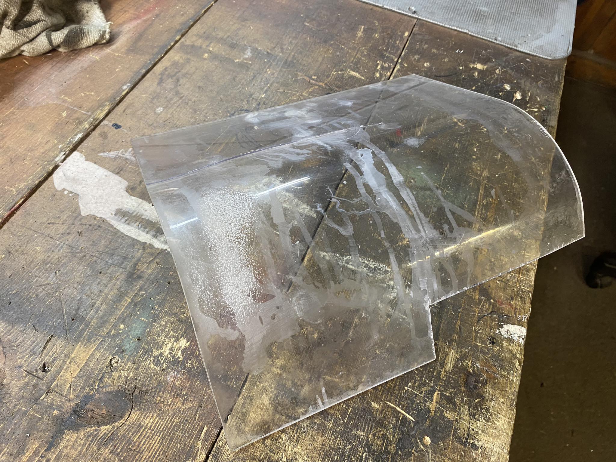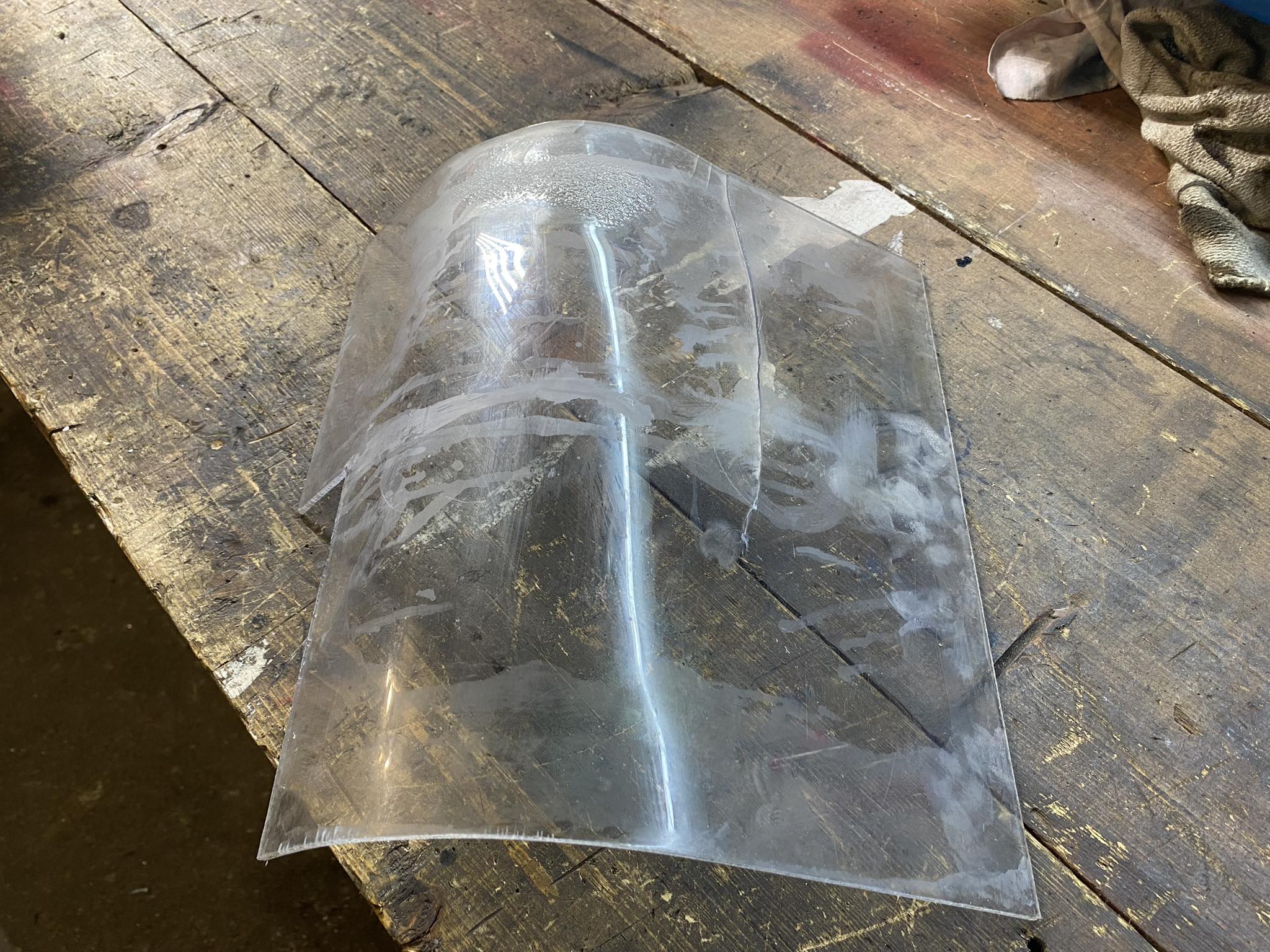 Nasel jsem tabulku plexi odpovidajiciho rozmeru, jenomze to melo na okrajich nejakou hnusnou oboustranku kterou jsem sice odstranil pomoci odstranovace samolepek, ale cele to plexi to naleptalo... Pak jsem to ohrival horkovzdusnou pistoli, abych to ohl, no na par mistech jsem to prohral moc, a navic po ohnuti to po par minutach prasklo... Tohle evidentne neumim...