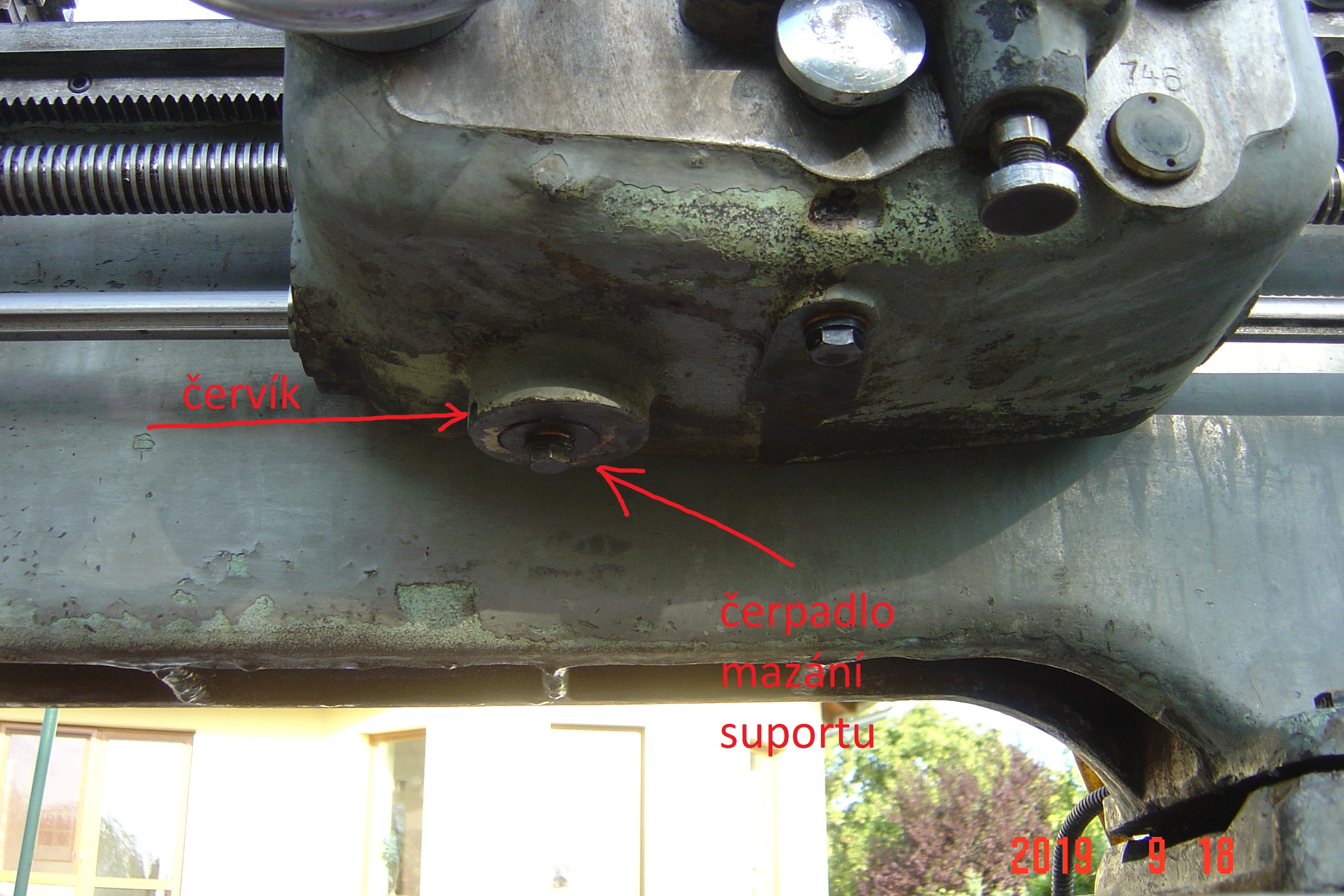 To já vím kde se zapíná posuvová hřídel. Mě zajímalo umístění toho čerpadla olejového v suportu. Máš to tam vyfocené s nejakou pákou a podle mě to vypadá že to čerpadlo je umístěné někde za nějakou ovládací pákou ale nevím kterou. Celou dobu jsem si myslel že to čerpadlo je zespoda suportové skříně. Vedle vypouštějícího šroubu na olej.
