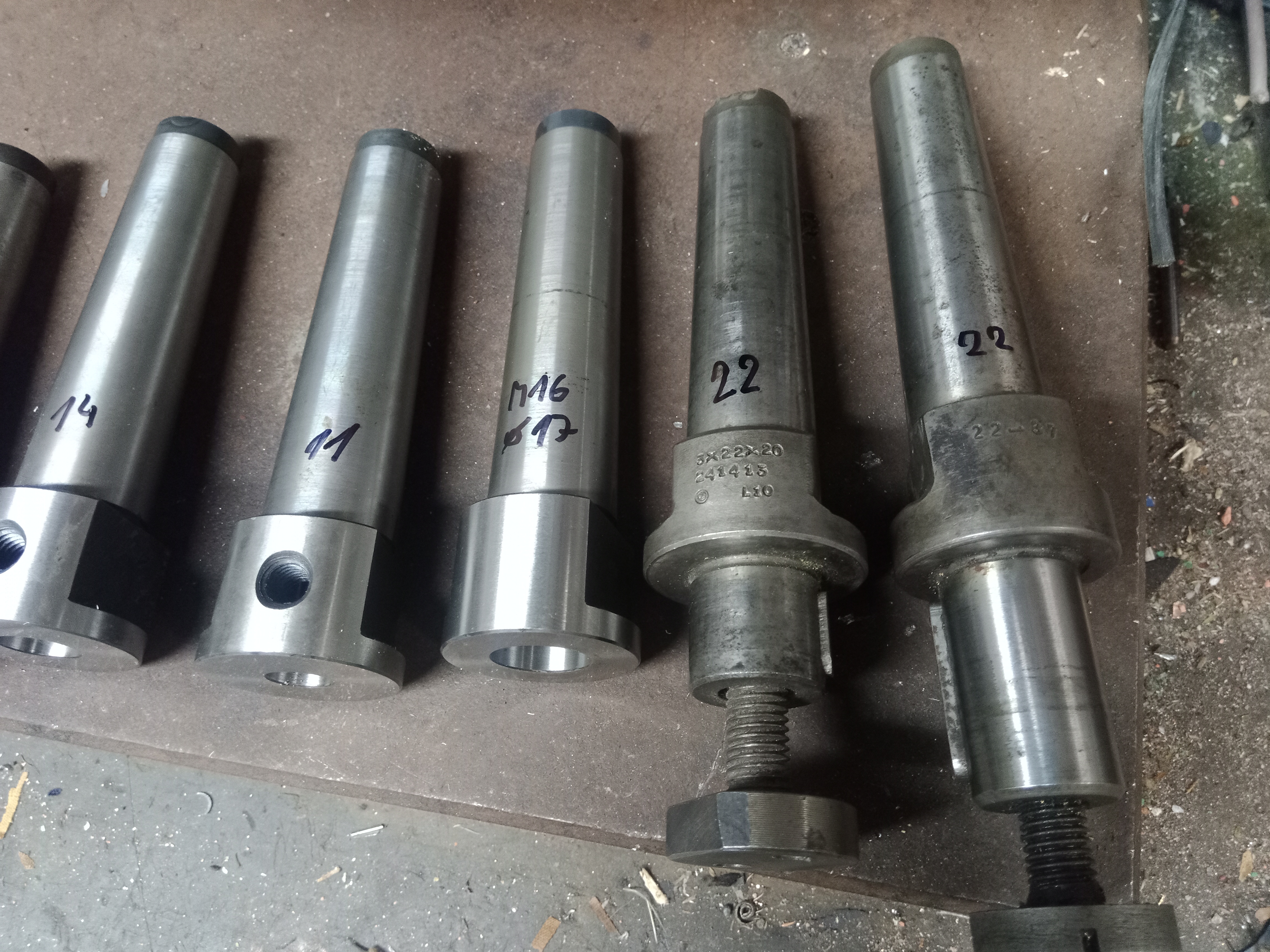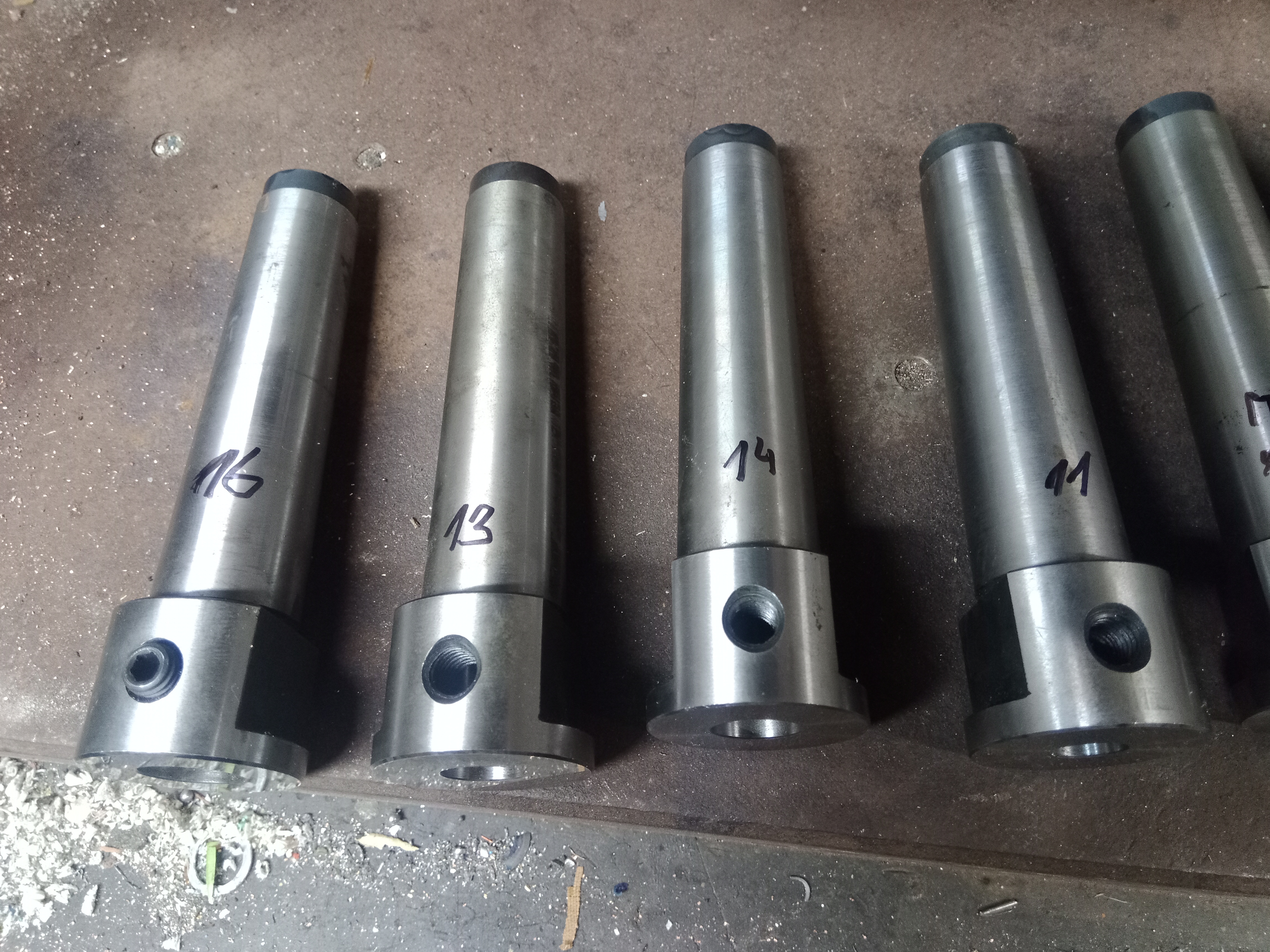 Povětšinou weldon, ale i nějaké nástrčné a pak jeden průměru 17mm s závitem M16 (ten sloužil na plátkovou frézu)