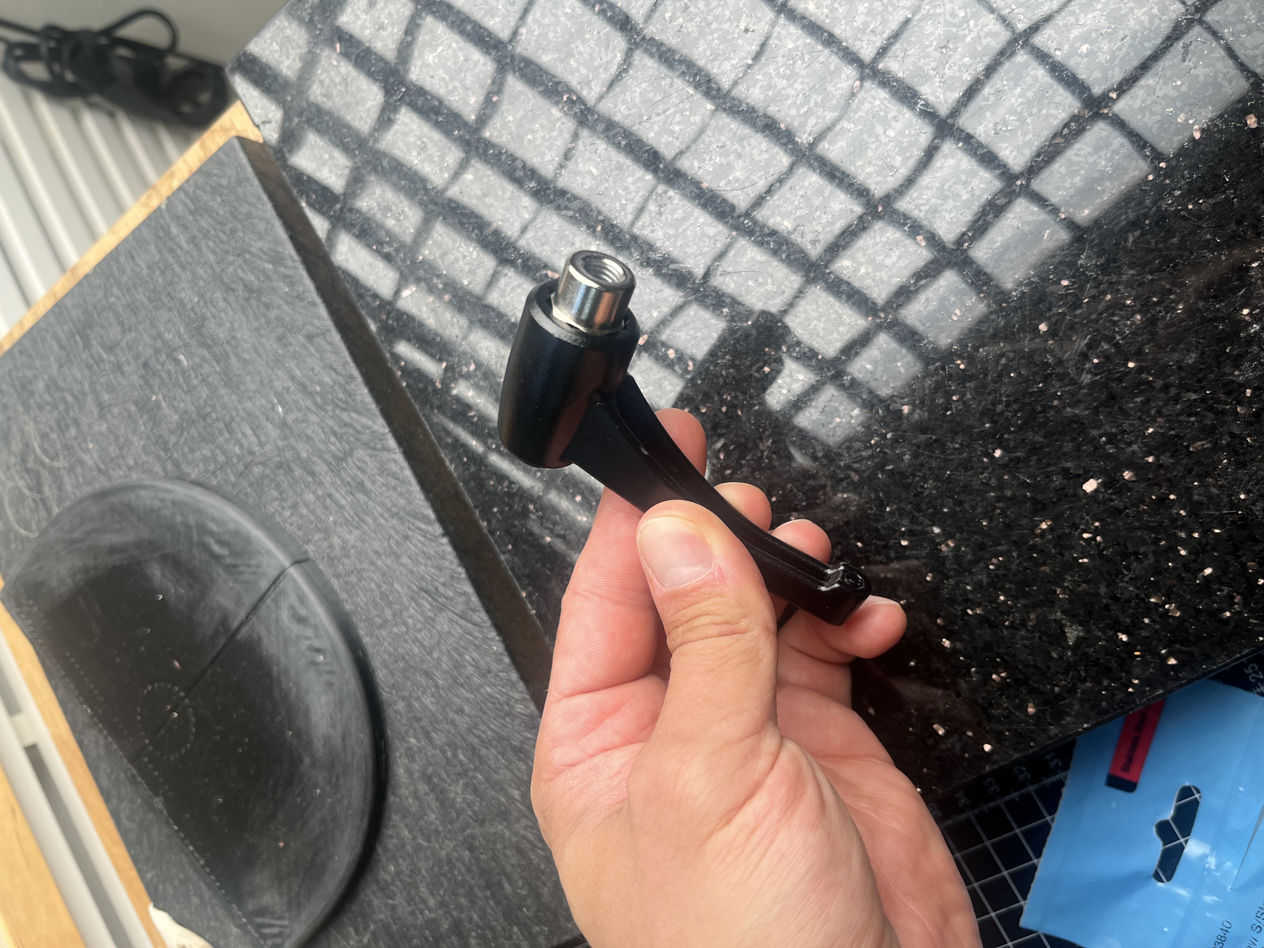Je to matice z kliky ramene studioveho svetla. Šestihran musí pasovat do hvězdice, která umožňuje změnu úhlu kliky. Klika jako taková je pěkná, litá z kovu, jen ta matice je moc měkká a závit se strhnul. Nejsem strojař ani inženýr, tak vám můj výkres a zadání možná přijdou úsměvné, ale dělal jsem co mohl.