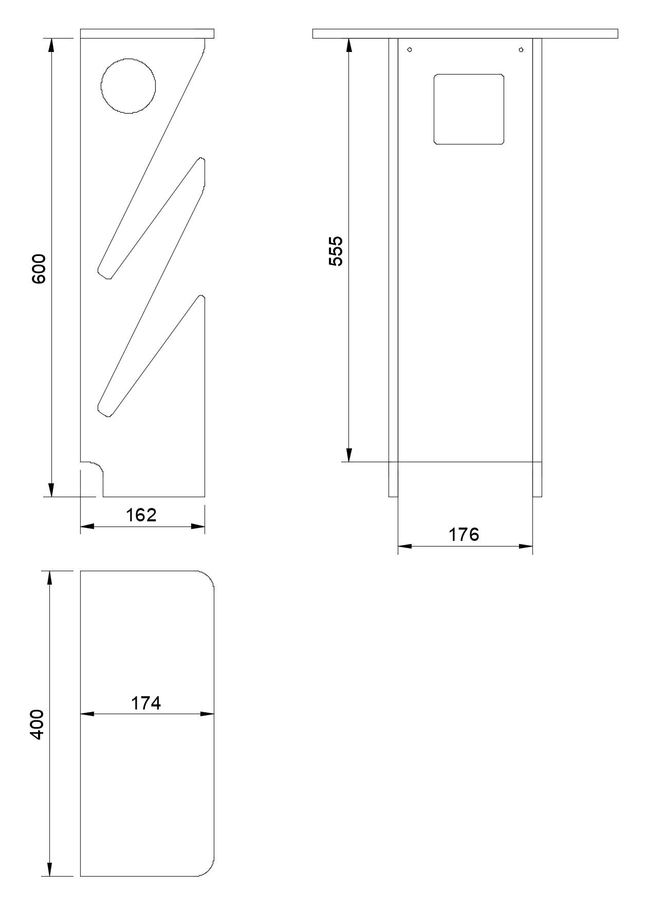2x identická bočnice 600 x 162 mm