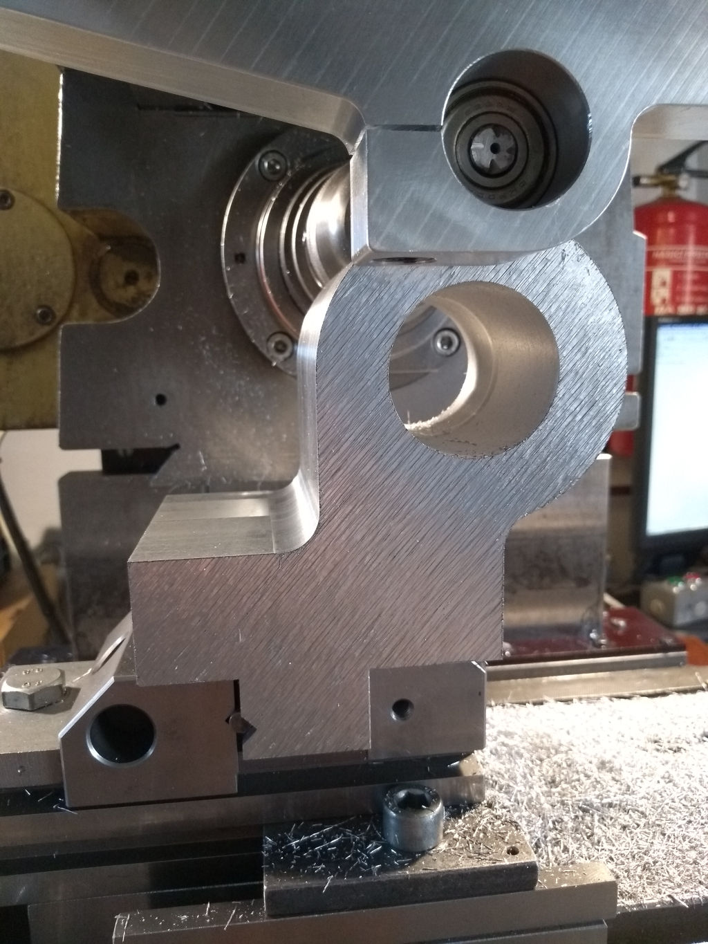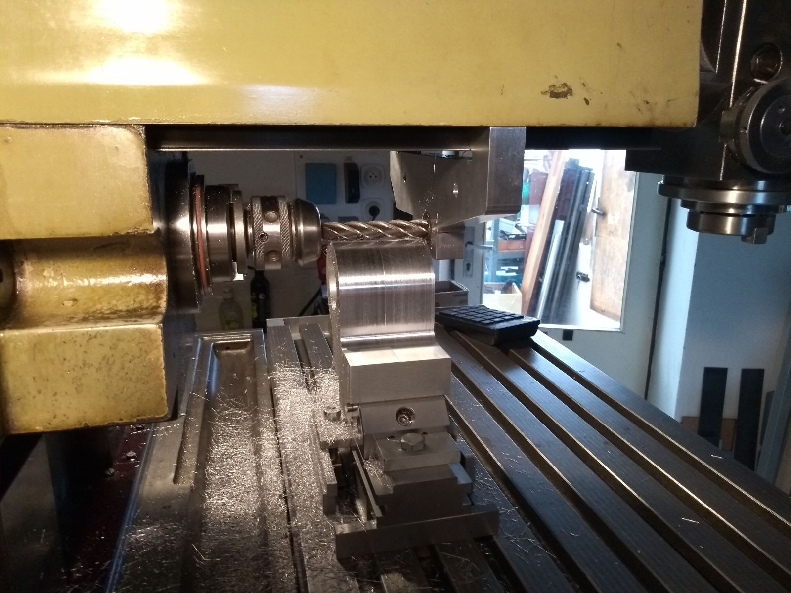Opět po dlouhé době zdravím všechny příznivce obrábění, bastlení a všemožného tvoření. Tento týden jsem páchal mírně neobvyklou věc - horizontální CNC obvodové frézování dlouhým (100 mm) tenkým (16 mm) nástrojem (HSS) :wink: Zatímco letmo může HSS-16ka vibrovat už od nějakých 30 mm délky, tady to ani nekviklo, tloušťka materiálu 80 mm. Ale jenom šlichtování, úběr 0.3 mm. Vnitřní rádiusy na obrobku jsou R10.