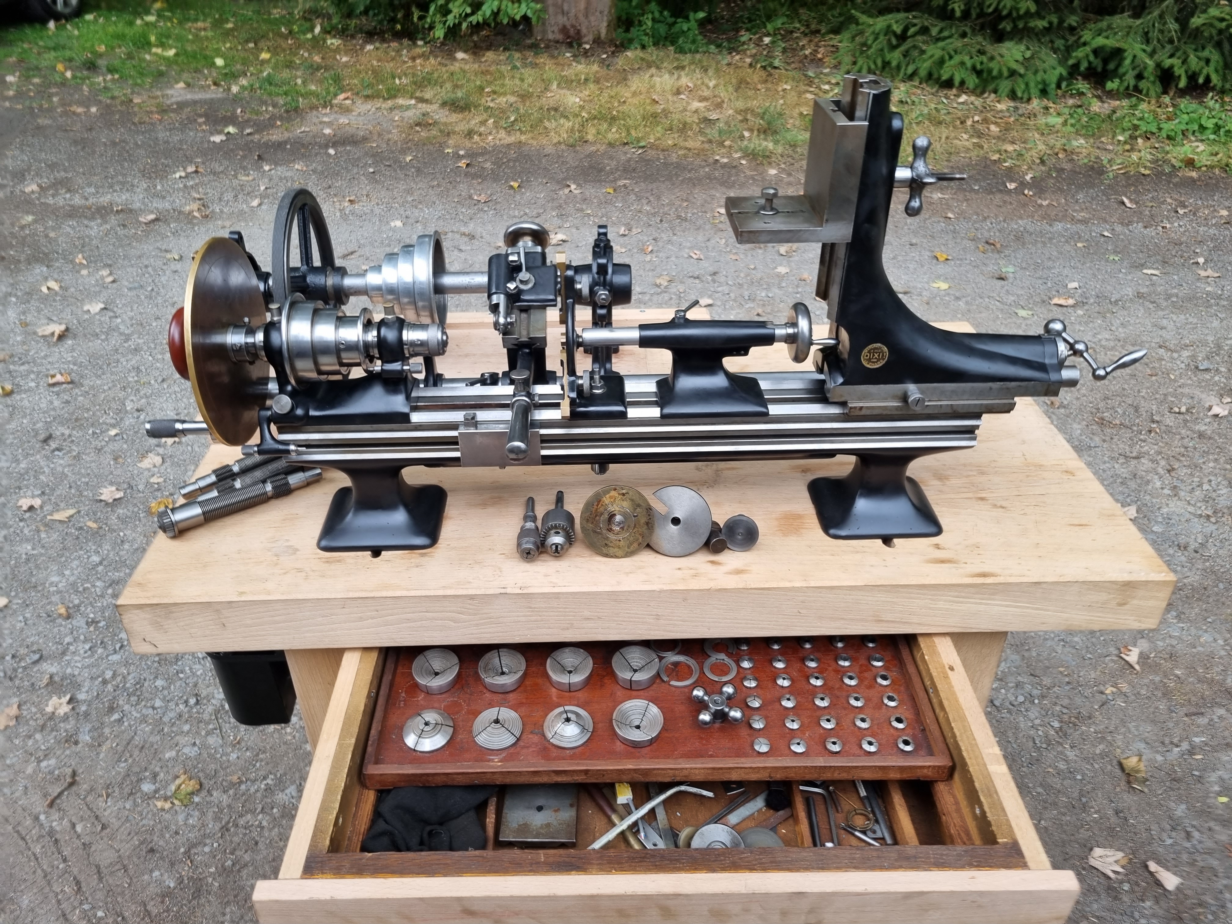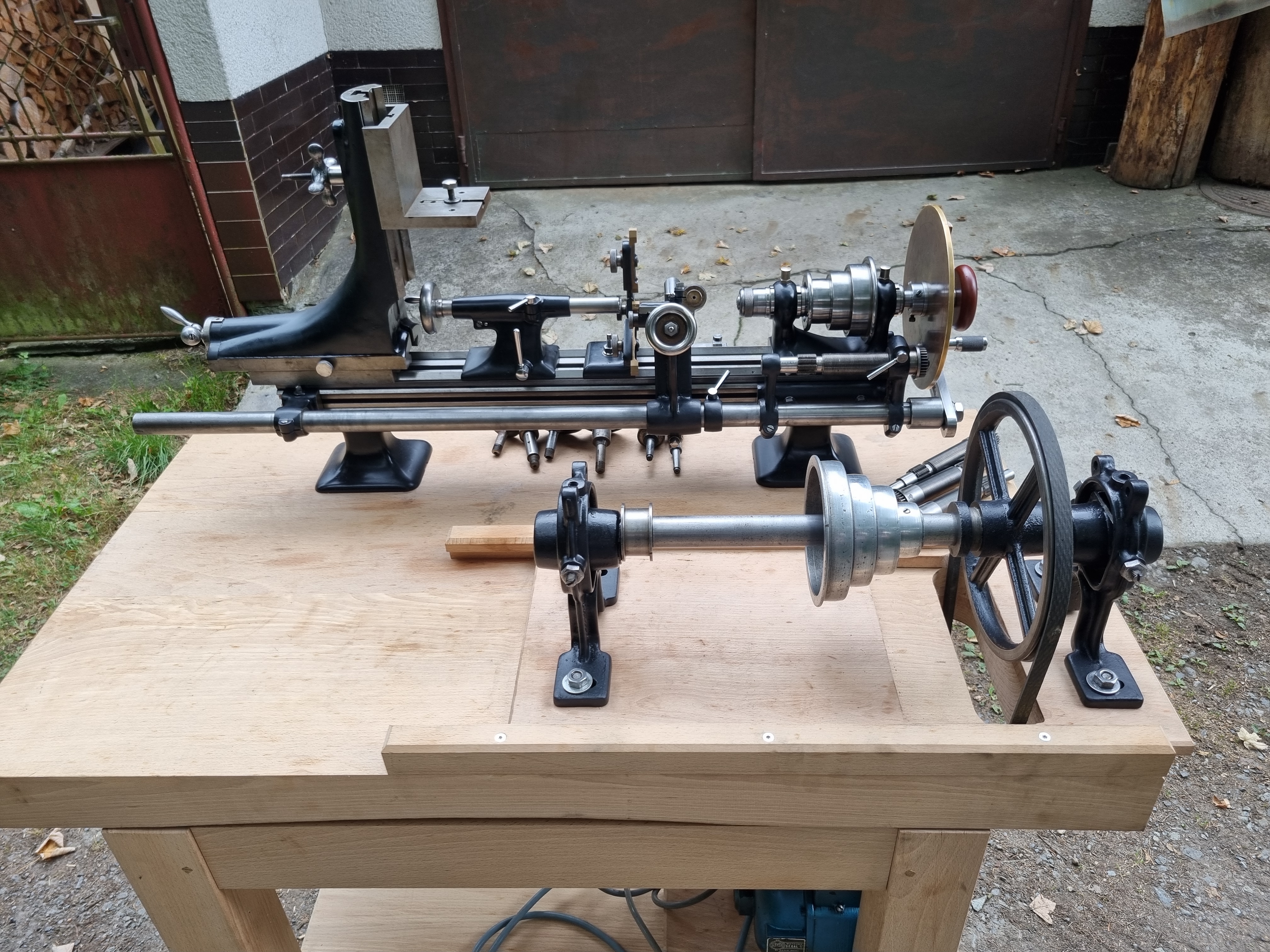 Co se uchycení týče, běžné se provádělo pomocí příruby s přišroubovanou univerzálkou. Mám starý hodinářský werk z Glashütte a je to tam stejně. Mmchdm - je ten průměr závitu na nose fakt rovných 25 mm? To měření přes centrovací osazení mi přijde z fotky jako ne úplně přesné, mám dojem, že je šuplera trochu nakřivo, ale možná je to tou flaškou zeleného sylvánu, co už mám v sobě :D