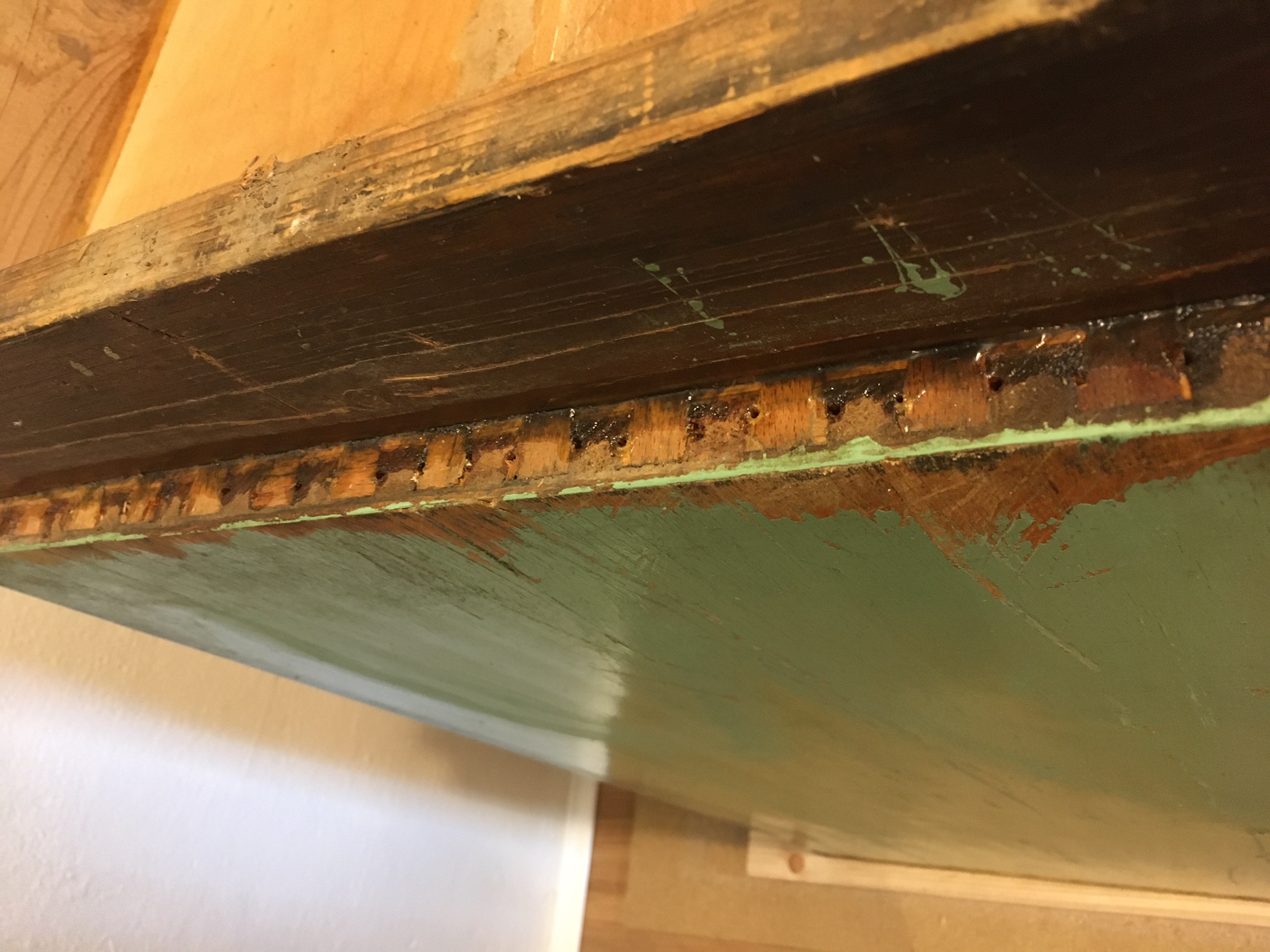1. Ako som spominal, do capovaneho spoja som navrtal 2mm diery a trosku zosikma, nech je tam najvacia stycna plocha medzi doskami. Do dier som potom injekcne dal lepidlo