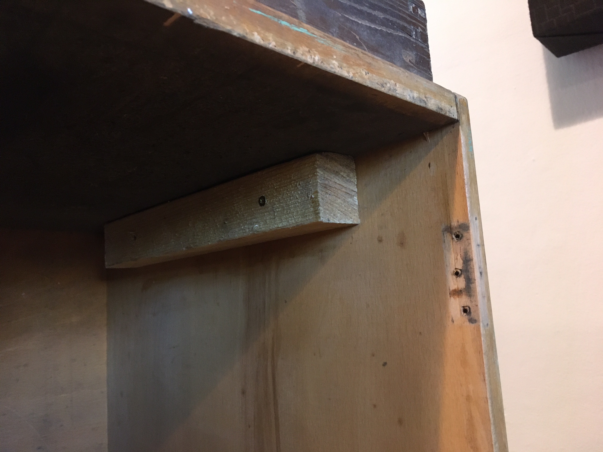 2. Medzi pracovnu dosku a bocne steny som dal hranolceky a rovnako prilepil. Skrutky su skor, aby do bolo stiahnute a nemusel som pouzivat tolko svoriek.
