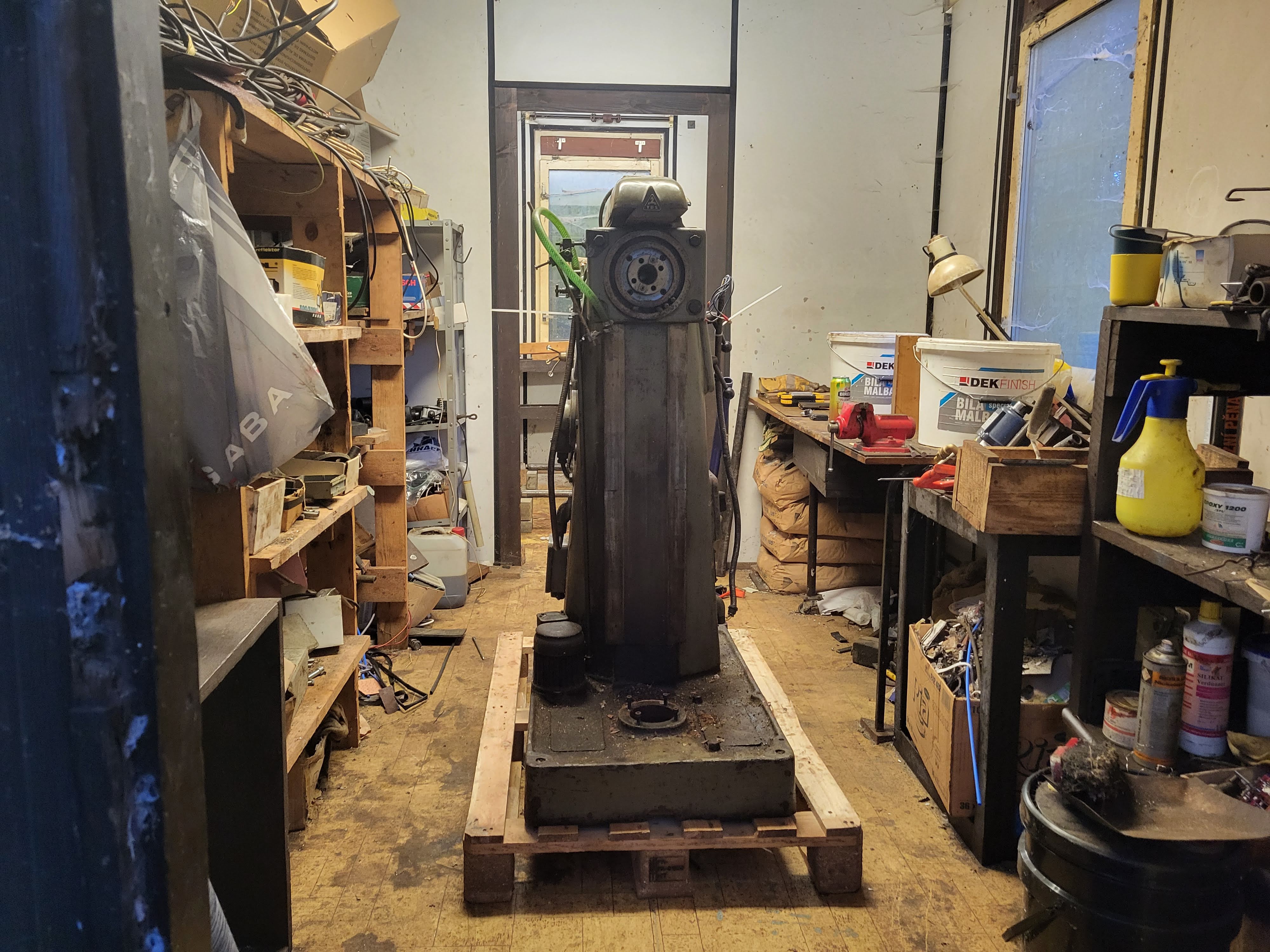 Frézku som (presnejšie jej maďarský klon ME1000) sťahoval autom z rukou, gurtňa sa dáva cez trám v hornej časti frézky. Von z budovy išla "po svojich" na guľatinách.