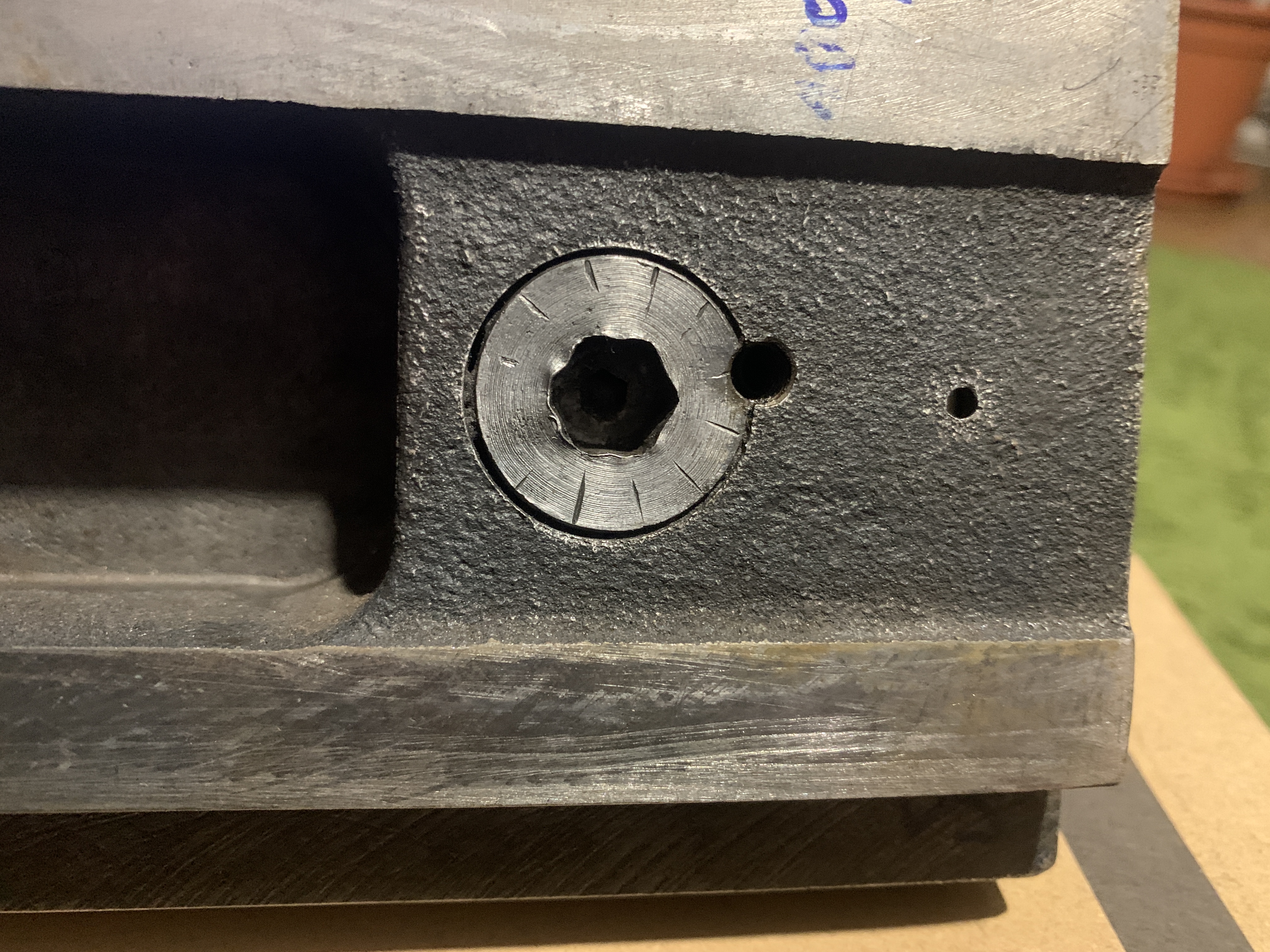 Pěkný večer. Mám skromný dotaz. Z důvodu neznalosti prosím některého z provozovatelů tohoto strojku, zdali by nevěděl jakým způsobem demontovat šroubek na přitahování nožového držáku. Zkrátka esi se musí vyšroubovat ( dole je otvor na imbus) a nebo jen vylisovat , je zajištěn červíkem. Moc děkuju. Pár obrázků: