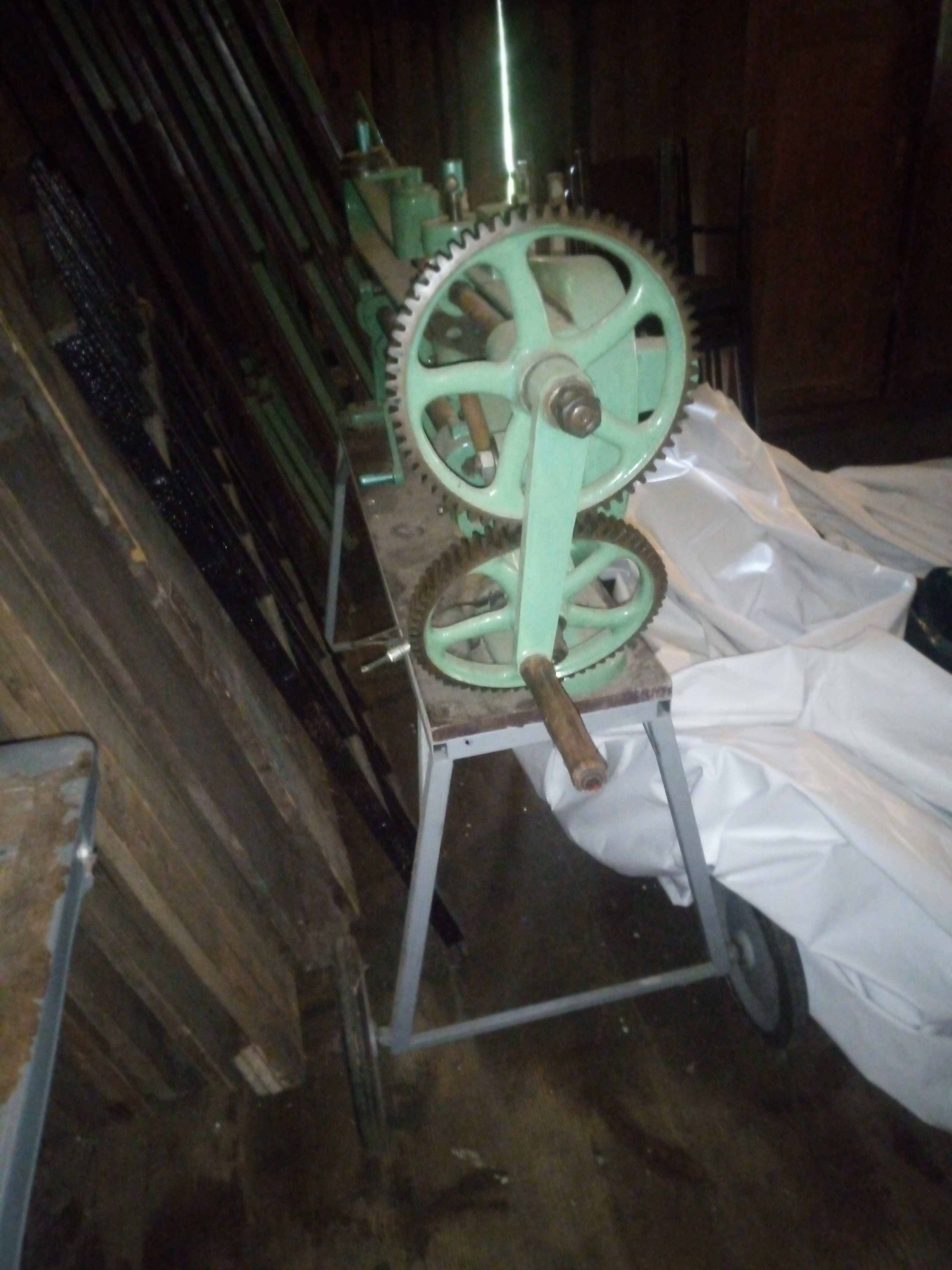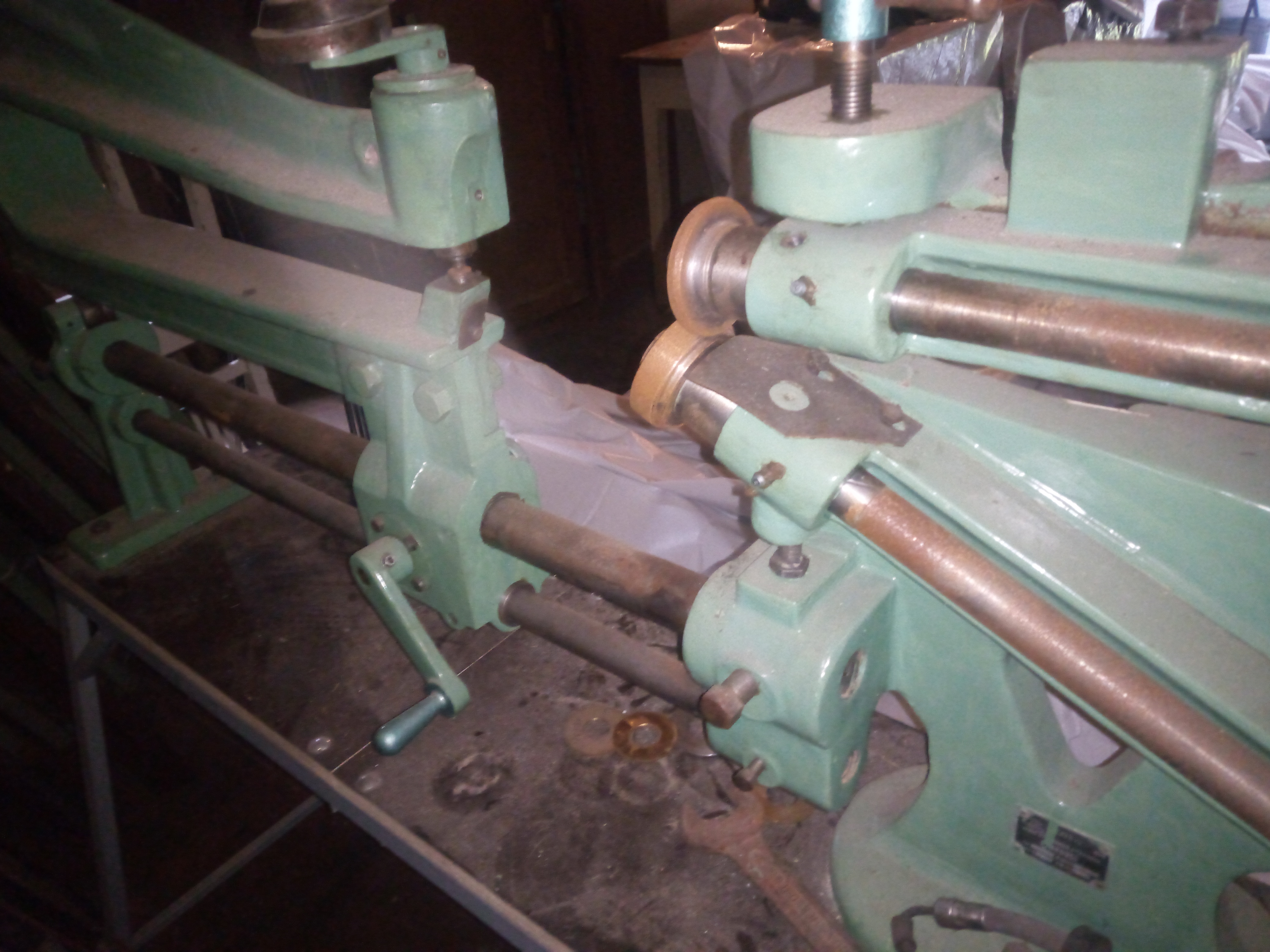Takže pouštím do světa: vykružovací nůžky NOS 1,5x1000, funkční, krájejí, na podvozku. K tomu můžu přidat pohon z průmyslového šicího stroje na předělání. 9990kč