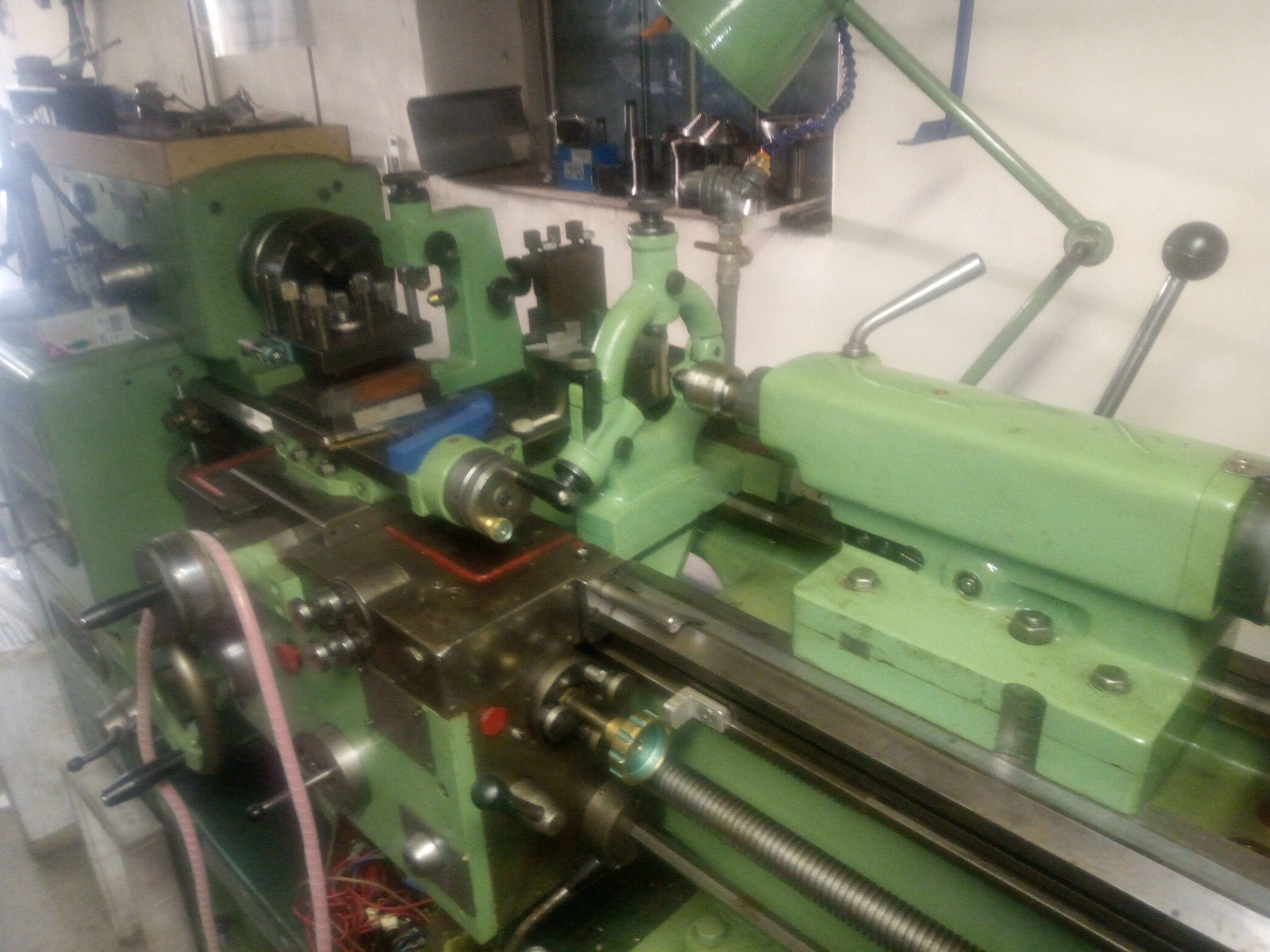 Soustruh SU-32/750, jediný nedostatek: nejde první sepnutí do hvězdy, dál jde, revers bez závad. Je někde po cestě zlomený 60 let nový kabel, do té doby makal bez závad a světe div se, alnico alnikuje jak má! Nový svazek kabelů nachystaný, ale zatím nebyl čas se do toho pustit. A ani důvod, v práci si můžu vytočit na 2 soustruhách co potřebuju. Vše potřebné vidět z fotek, kdyžtak dotazy do sz. Všude rok nové oleje a najeto na ně 0,00nic... třípakna, 4pakna, k oběma obrácené čelisti, zadní nožový držák, další nožovka, hodinky, arerační kotouče na vřeteno, atd..