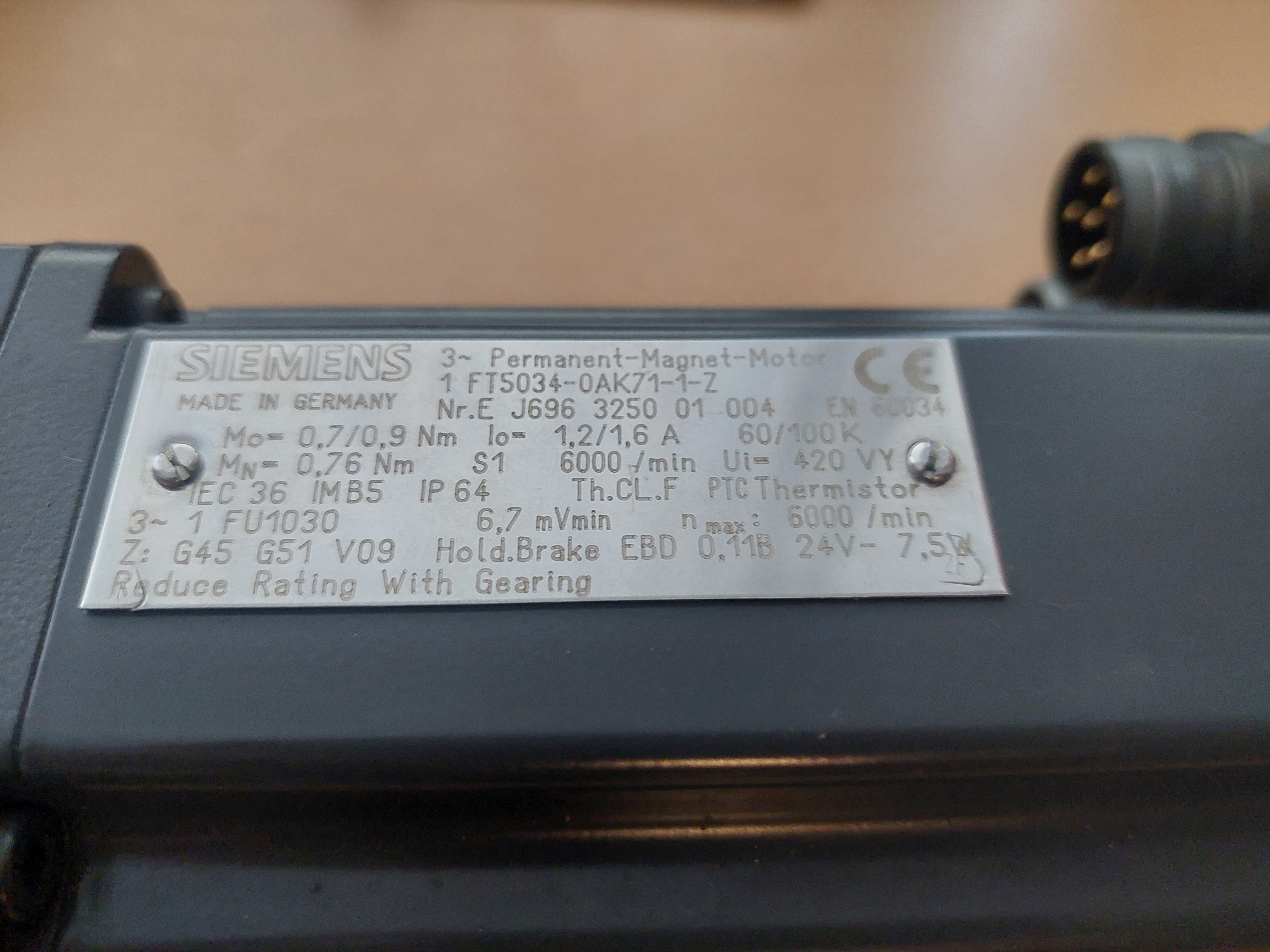 Prodám motor s enkoderem a převodovkou Siemens 1ft5034-oak71-1z, motor sloužil jako náhradní, vyzkoušen v roce 2022/11. Cena 2500kc případně domluva