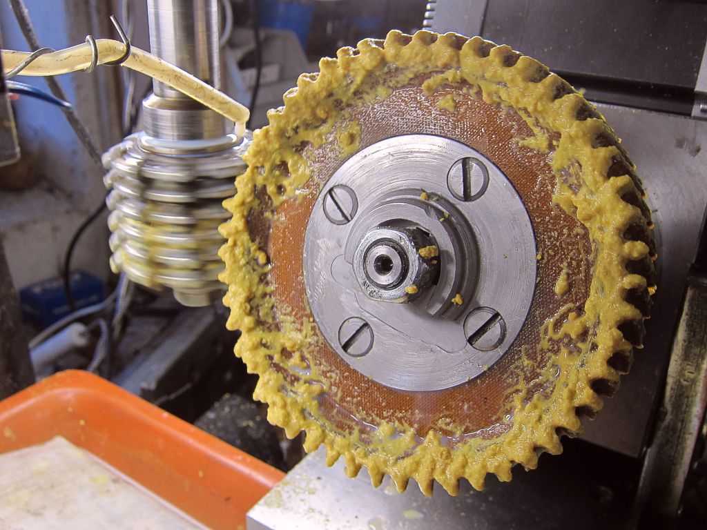 Tak to už si vážně nepamatuju. Ona ta kola byla na mě docela velká a ten modul 2,5 na hranici možností frézky. Jen díky tomu, že to byl pertinax jsem do toho šel. Dalo by se to cca spočítat takto: co jedna otočka frézy to jeden zub, co jedno otočení kola, to posun v mm na zub. Tuším, že jsem to jel na 3x poprvé do půlky, pak do plna a naposled na čisto.