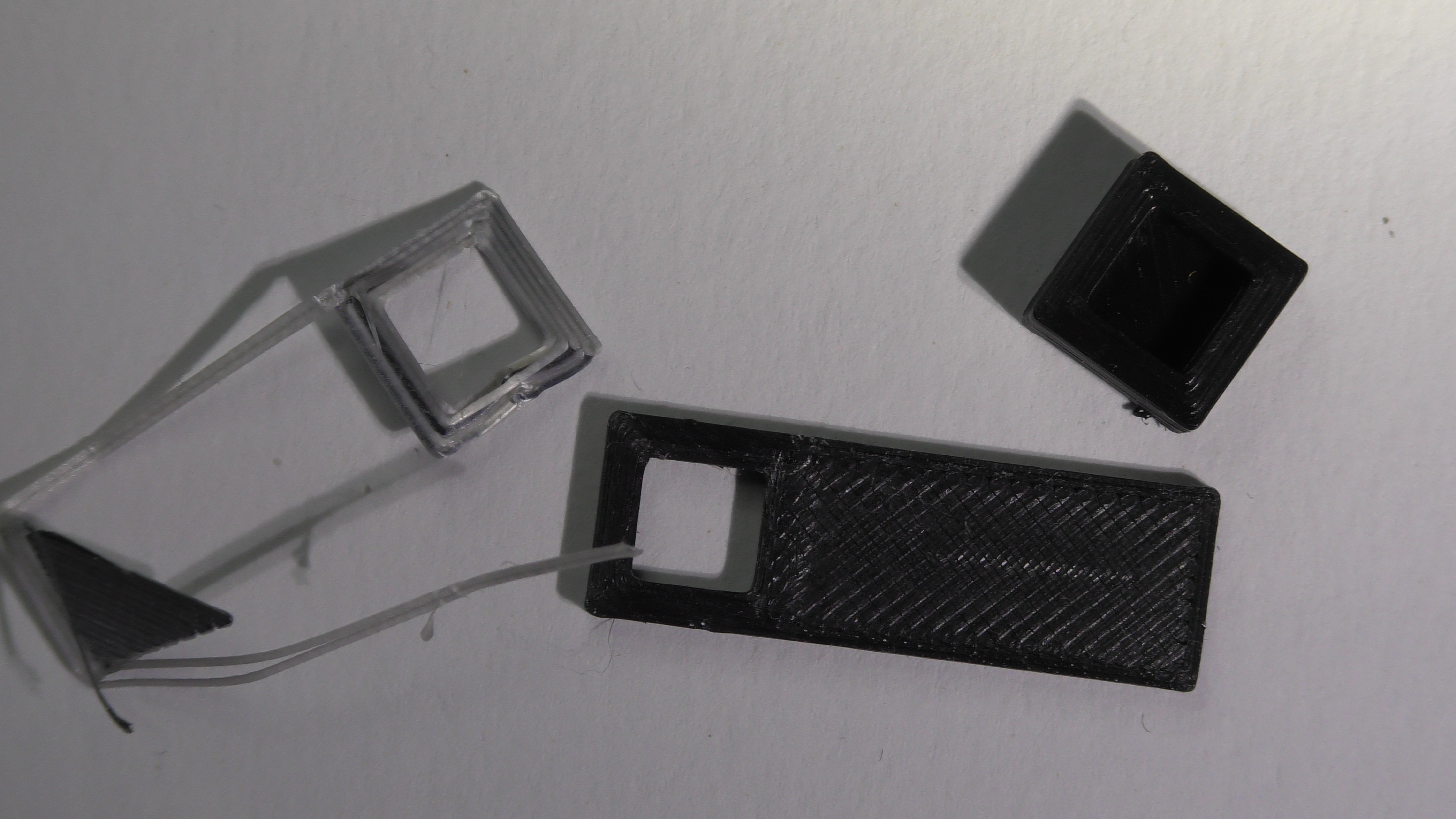 Je vidět, že podpora (mezivrstva) se vytiskla vlevo, ač měla být vpravo. Vpravo byla mezivrstva z PETG namísto PLA.