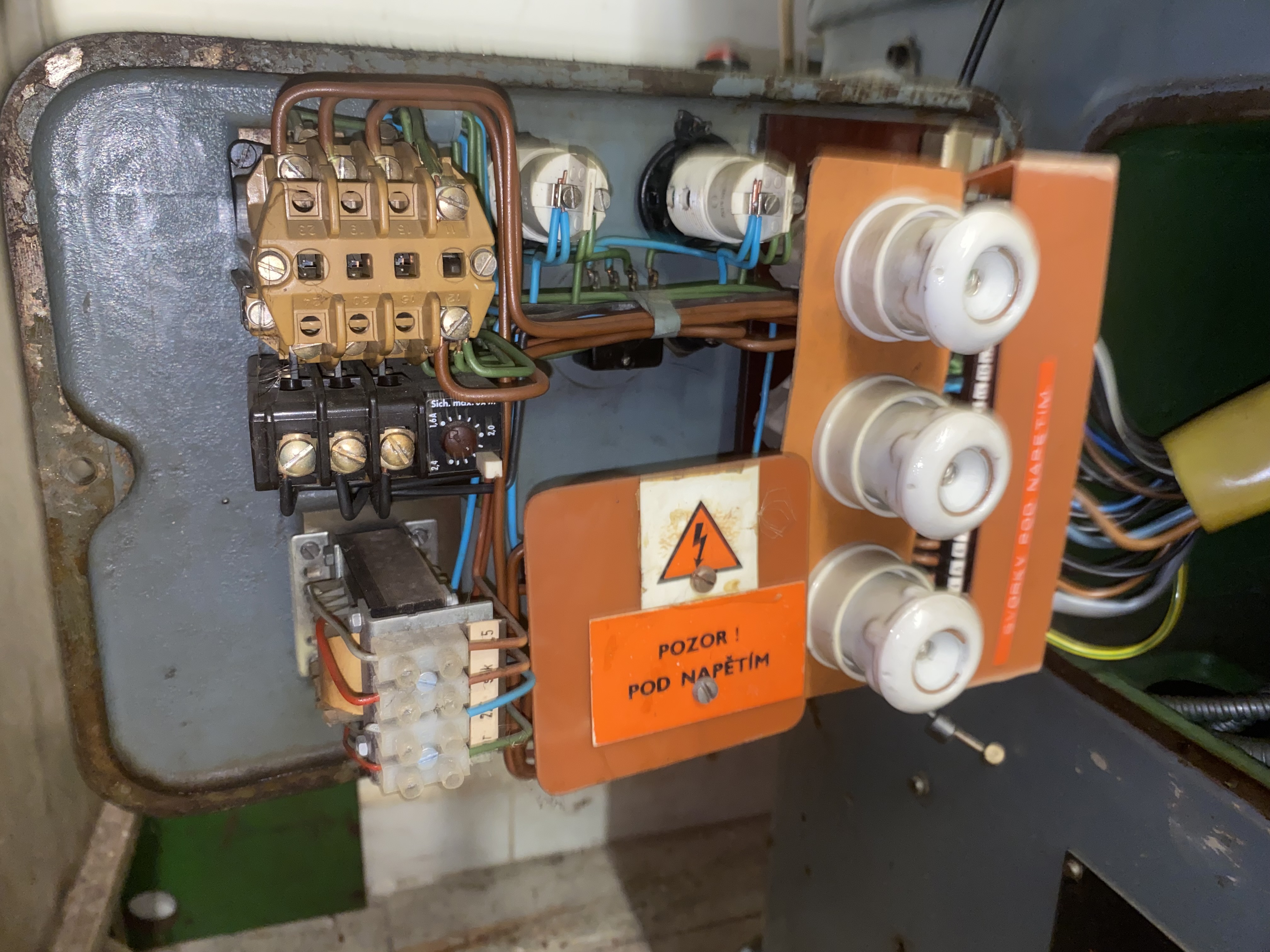 Tak včera jsem přišel záhadě na kloub pustil jsem se do opravy elektriky vyměnil nový přívodní kabel, který byl zakončen v přívodní svorkovnici na venkovní straně stroje a tam byla rozlomená originální připojovací keramická svorkovnice. Která se dotýkaka kovovými svorkami kovového víčka krabice. Potom jsem ještě na dvou místech vypátral propoje pracovních vodičů s ochraným vodičem. Tak teď už mám elektriku po novu 5ti vodičovou a chránič nevybavuje. Dále jsem všechnu elektroinstalaci a veškeré šroubky dotáhnul. Nejvíce byli povolené šroubky svorkovnic. Tak před se jenom , ta elektroinstalace je 50 roků stará. Poto bych toto doporučil udělat u každého staršího stroje když si ho kluci kupujete. Tak teď ta elektrika vydrží dalších 50 let :-)