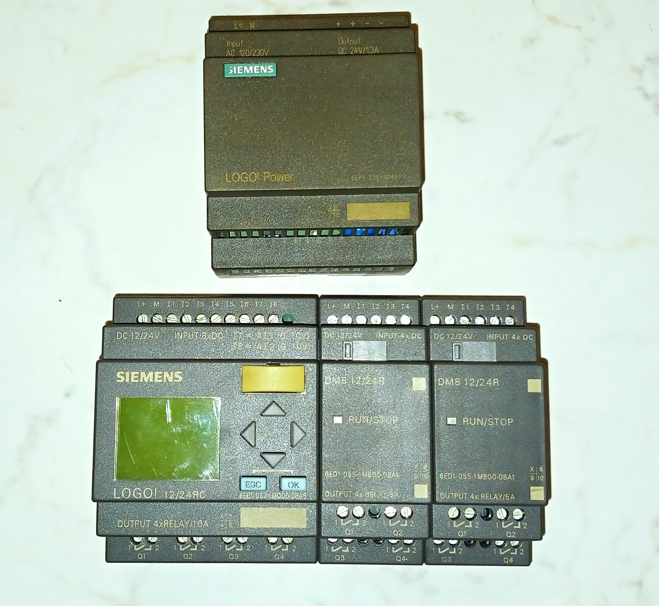 Siemens LOGO CPU, I/O a zdroj. Nějak mi to nejde lépe vyfotit