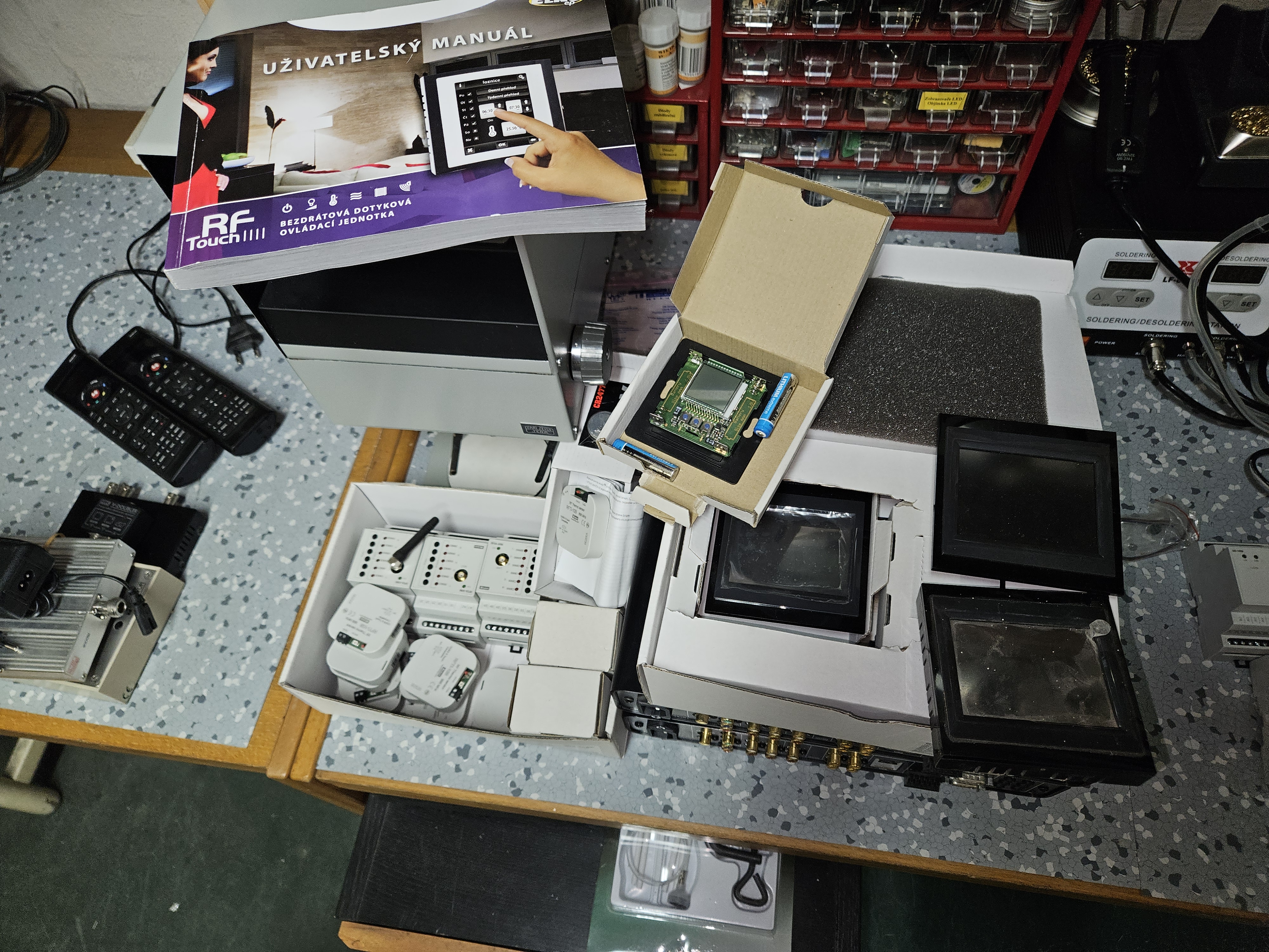 Řídící jednotky inteligentní instalace, myslím že v jedné není zdroj, ale druhá jede. Ale patří tak standartní 5 a 12V aspoň co si pamatuju. Krásná hliníková krabice