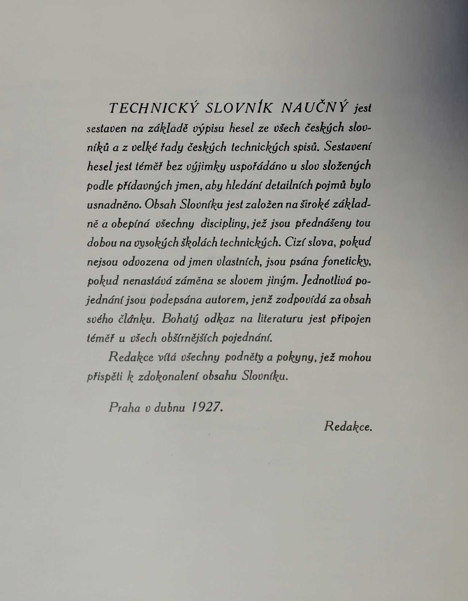 je tu k dispozici "Technický slovník naučný" z roku 1927.