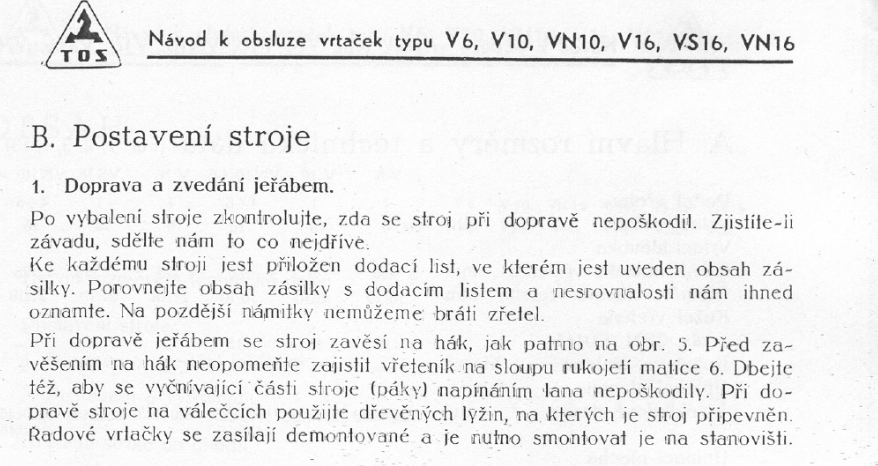 Koupil jsem sloupovou vrtačku TOS VS16 a teď přemýšlím jak jí naložit , budu mít auto s rukou na 1 tunu , takže to problém nebude ale jak jí zavěsit a neponičit . V návodě píšou toto , viz obrázek .