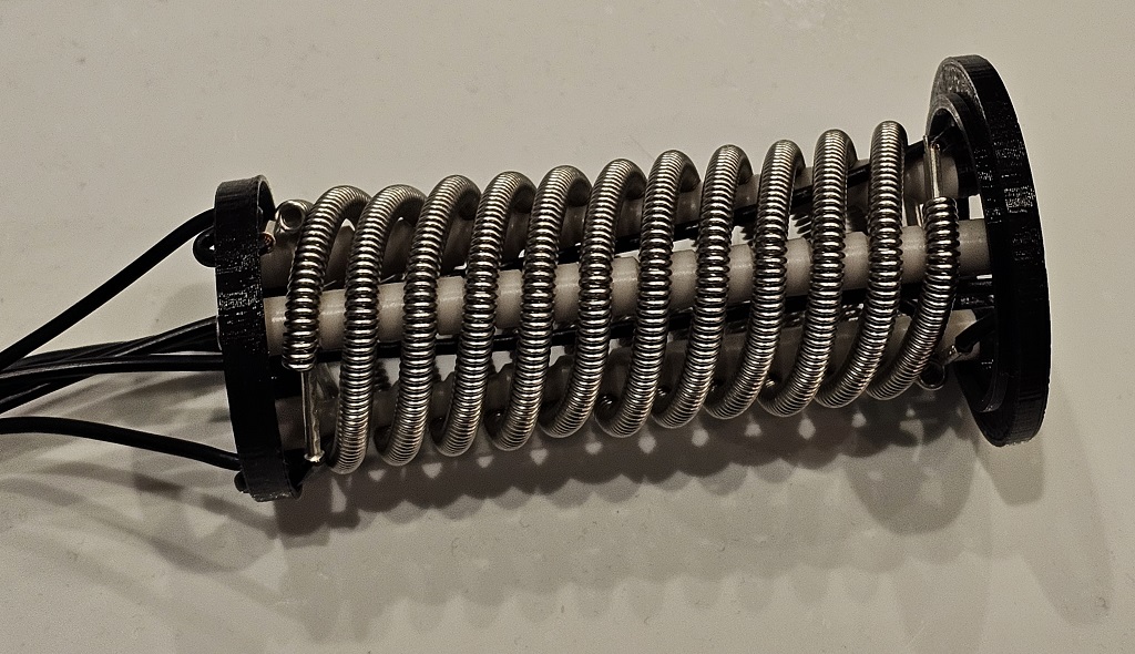 V pazbe nebylo misto, puvodne jsem chcel udelat kostku a v ní uchytit pruzinu šrouby, bohuzel se neveslo, tak svařit a nevyhřát. No funguje to parádně