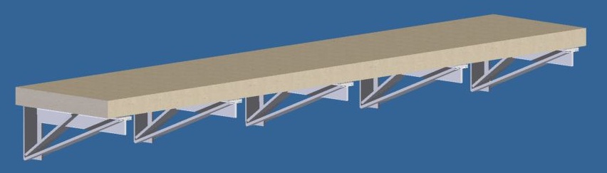 Profil tvaru T 40mm, cast na stene ma 12cm, cast pod desku ma 30cm, opory su z 6mm plechu.