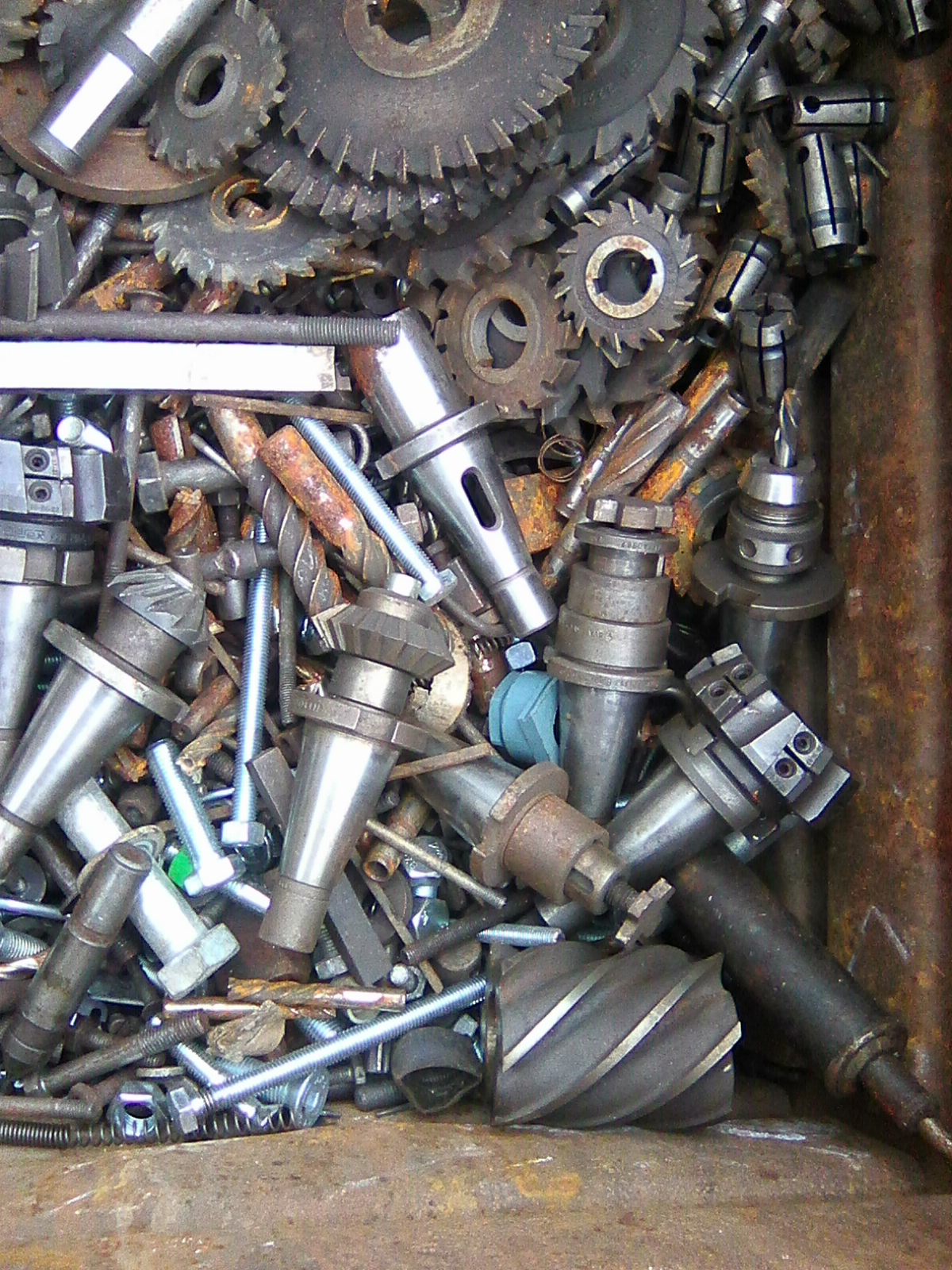 Kolbenova, strmé trny 40, hlavičky JAL + kleštiny, kotoučové frézy, válcové stopkové (už zmokly).....